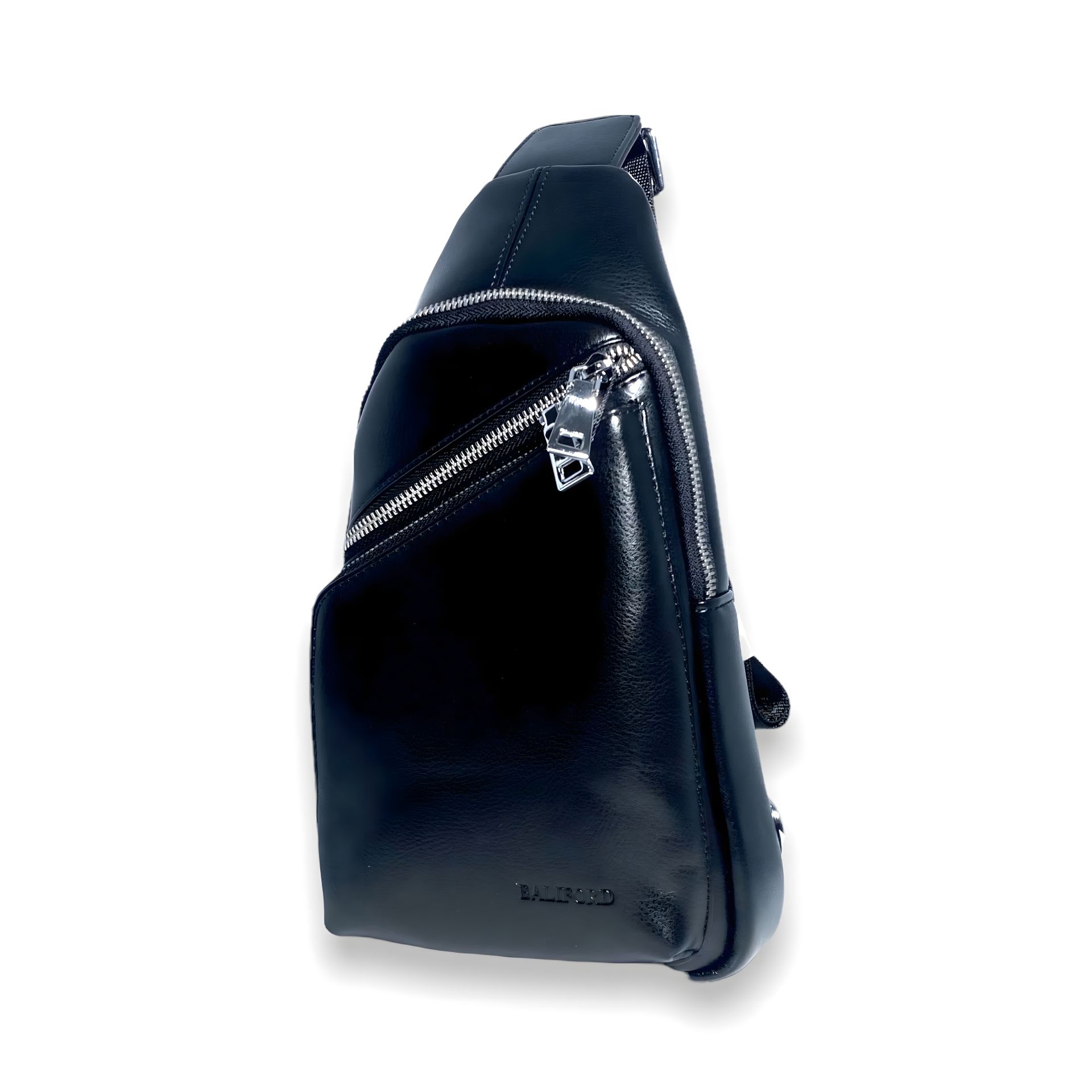 Сумка-слінг із штучної шкіри чоловіча B1203 один відділ, дві кишені на блискавці на лицевій стороні, отвір для навушників розмір:30*16*7 см чорна
