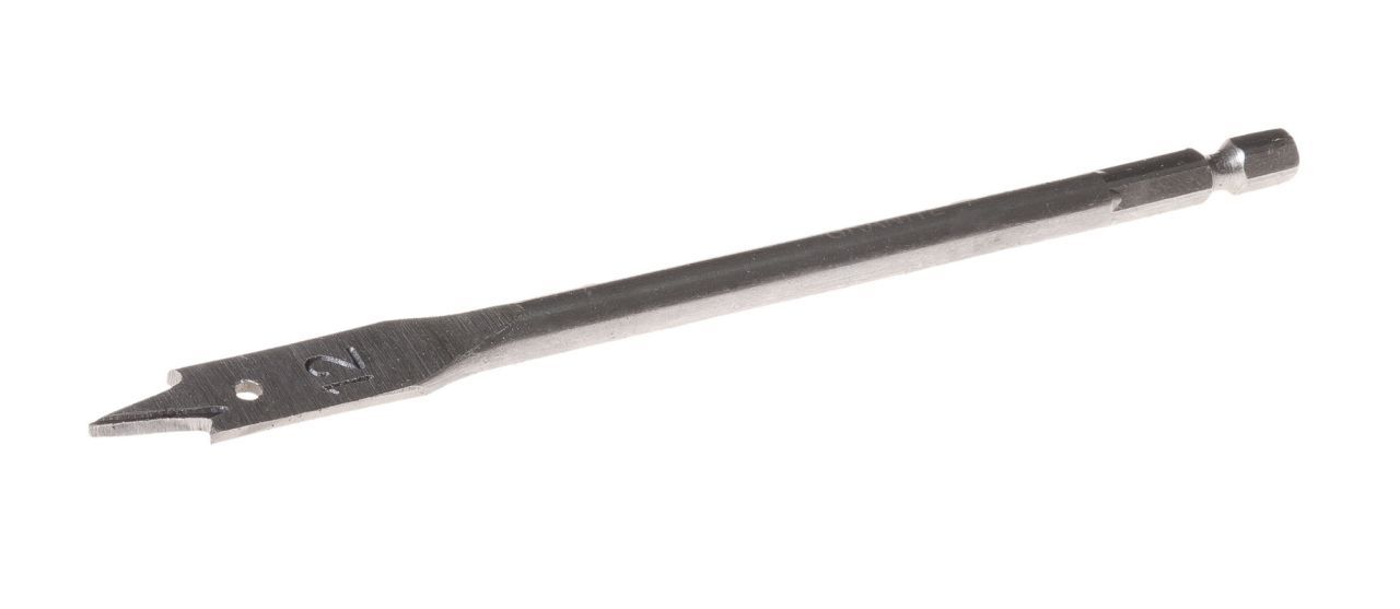 Свердло для дерева перове Ø 12 мм, довжиною 152 мм з 6-гранним хвостовиком ¼" - ефективний інструмент для свердління отворів у деревині, фанері, ДСП і МДФ. Центрувальний наконечник забезпечує точний початок роботи без зісковзування, а плоска форма ріжучої. 152 мм можна виконувати глибоке свердління. Ідеально підходить для столярних, монтажних та оздоблювальних робіт. • високовуглецева сталь HCS