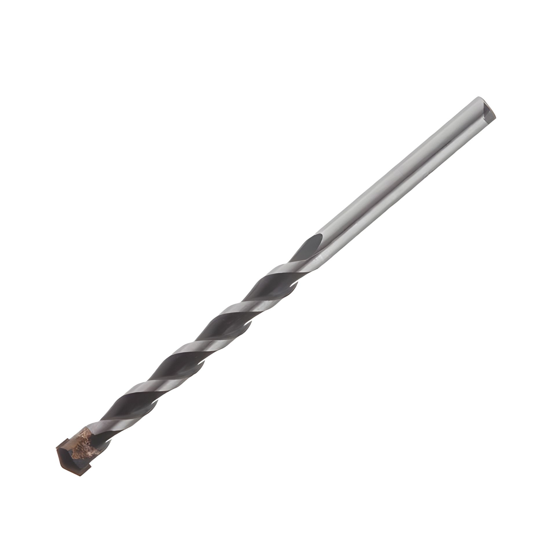 Кут заточування свердла з твердосплавним наконечником становить 130°, забезпечує легкий початок свердління, що особливо важливо для самоцентрування та запобігання ковзанню інструмента в початковій фазі свердління. Спіральна різальна частина виводить пил з робочої зони, мінімізуючи теплову дію, що важливо для довговічності та якості виконаних отворів.