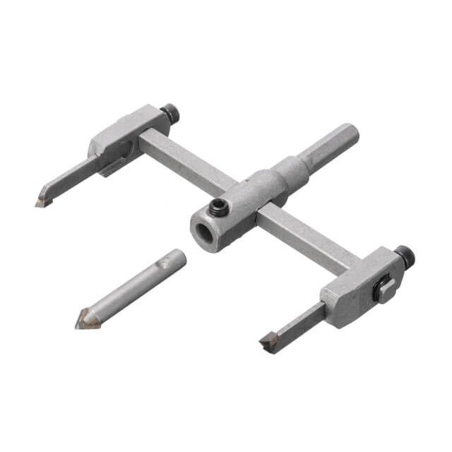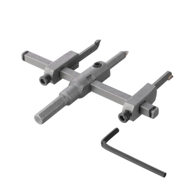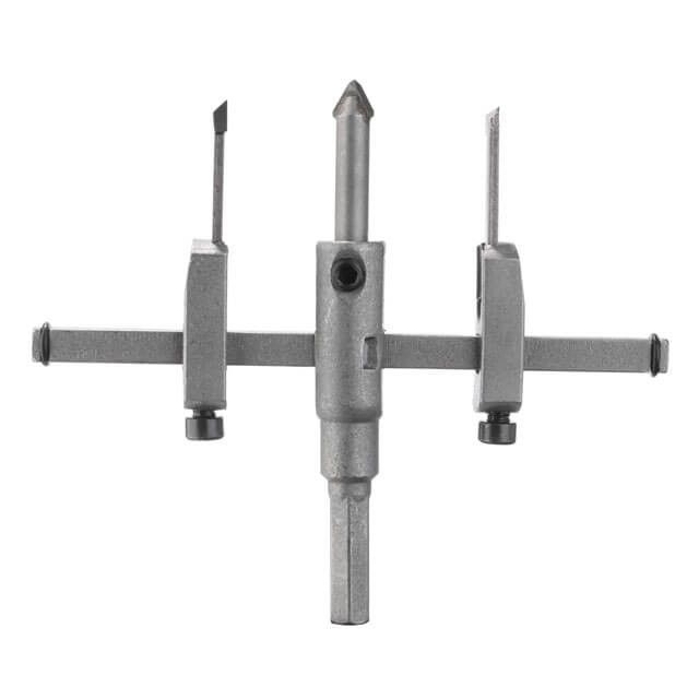 Дворізцева система з центруючою частиною компенсує можливе биття та несиметричність конструкції, порівняно зі свердлами з одним різцем. Всі різальні частини кругового свердла оснащені твердосплавними кромками, які забезпечують якісний та рівний різ. За допомогою спеціальних гвинтів та шестигранника Ви зможете легко відрегулювати відстань між різцями та вирізати отвори різних діаметрів від 30 до 120 мм.