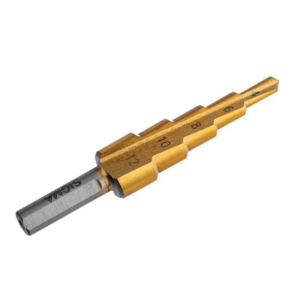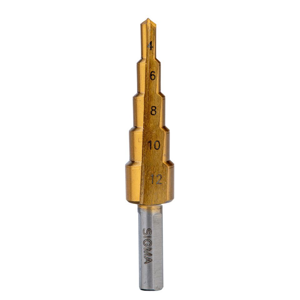 Східчасте свердло по металу HSS-TIN титанове з прямою канавкою Ø4-12мм, крок 2мм (блістер) SIGMA 1186041