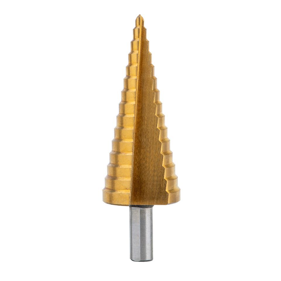 Свердло має ступінчасту структуру, де кожен наступний ступінь відрізняється підвищеним розміром, що дозволяє постійно змінювати діаметр отвору, не зупиняючи роботу. Різноманітність діапазонів та кількість сходів дозволяє вирішувати будь-які завдання за лічені хвилини. На кожній сходинці свердла є маркування діаметра.