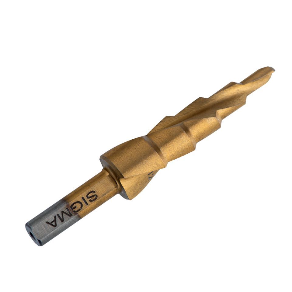 Свердло по металу східчасте HSS-TIN титанове зі спіральною канавкою Ø4-12мм, крок 2мм (блістер) SIGMA 1183041