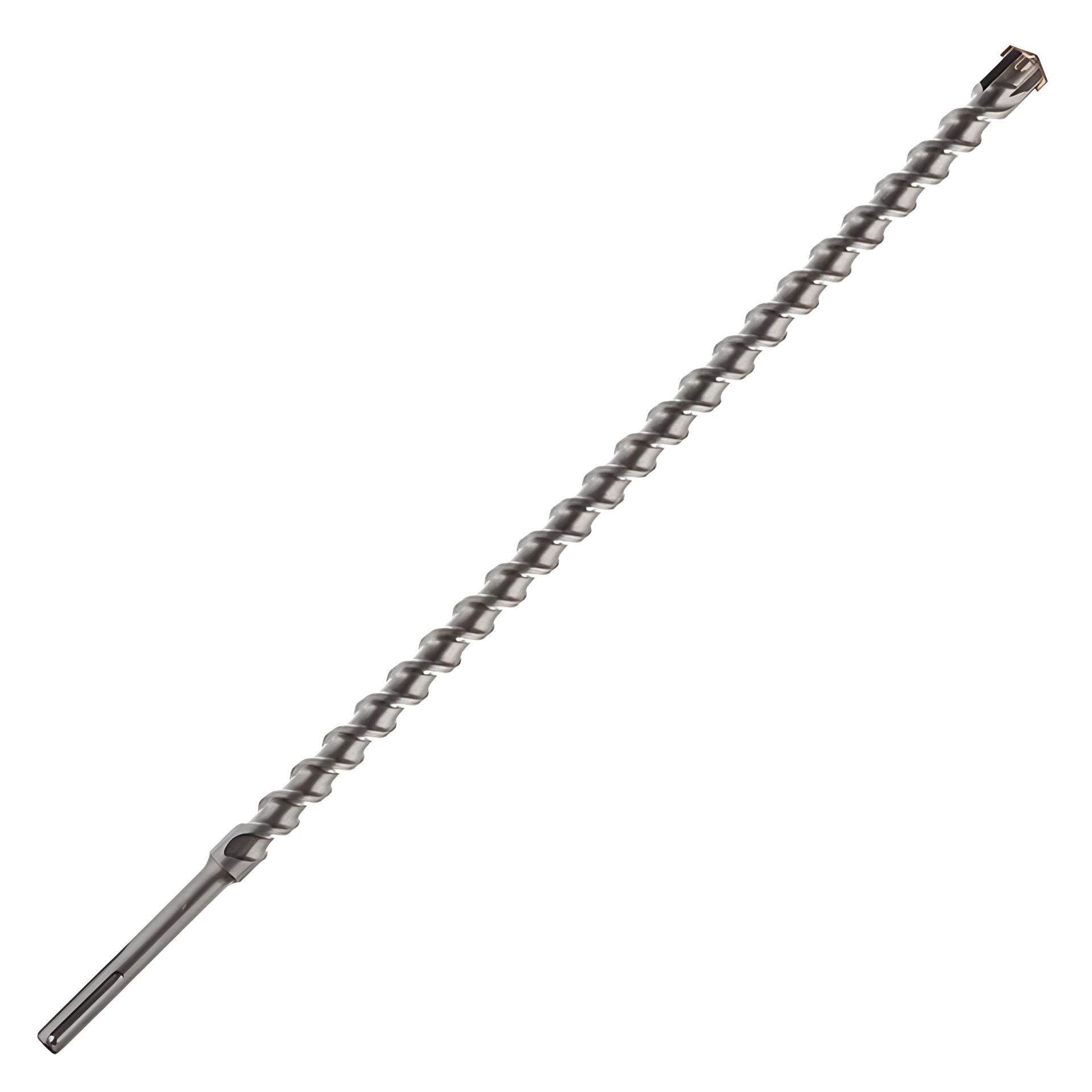 Твердосплавний наконечник з чотирма різальними гранями забезпечує легкий початок свердління та підвищену точність, що особливо важливо для центрування та запобігання ковзанню інструмента в початковій фазі свердління. Спіральна різальна частина ефективно виводить пил з робочого простору, мінімізуючи теплову дію, що важливо для довговічності бура та якості виконаних отворів.
