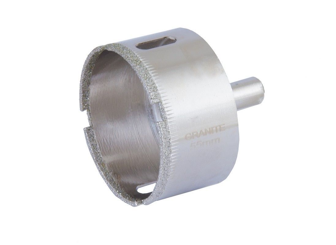 Свердло для скла та кераміки трубчасте з алмазним напиленням 55 мм - професійний інструмент для акуратного свердління отворів великого діаметру у твердих та крихких матеріалах без ризику сколів та тріщин.