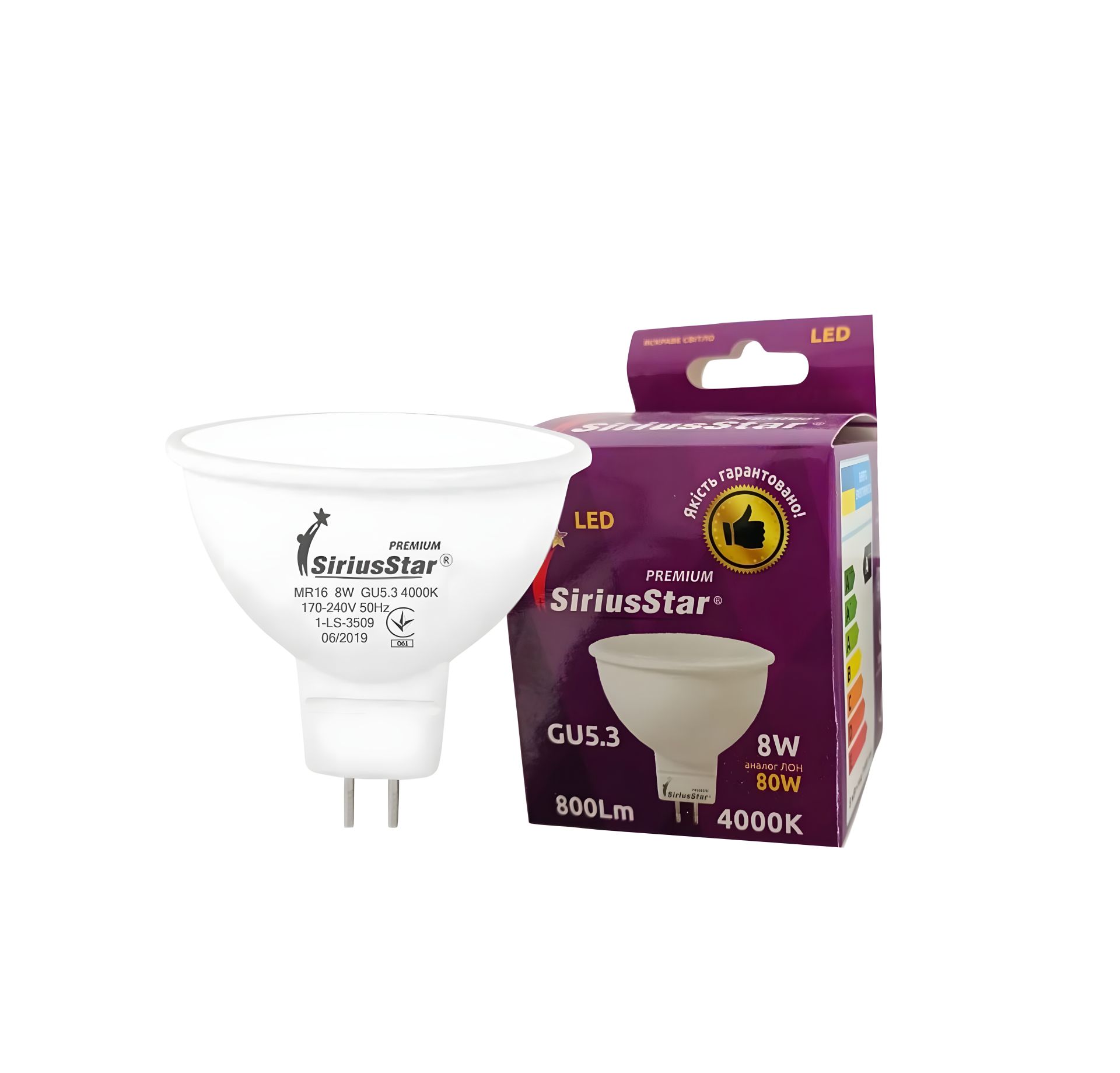 Лампа світлодіодна GU5.3 220V MR16 SIRIUSSTAR 3509 8W 4000K-Т11
