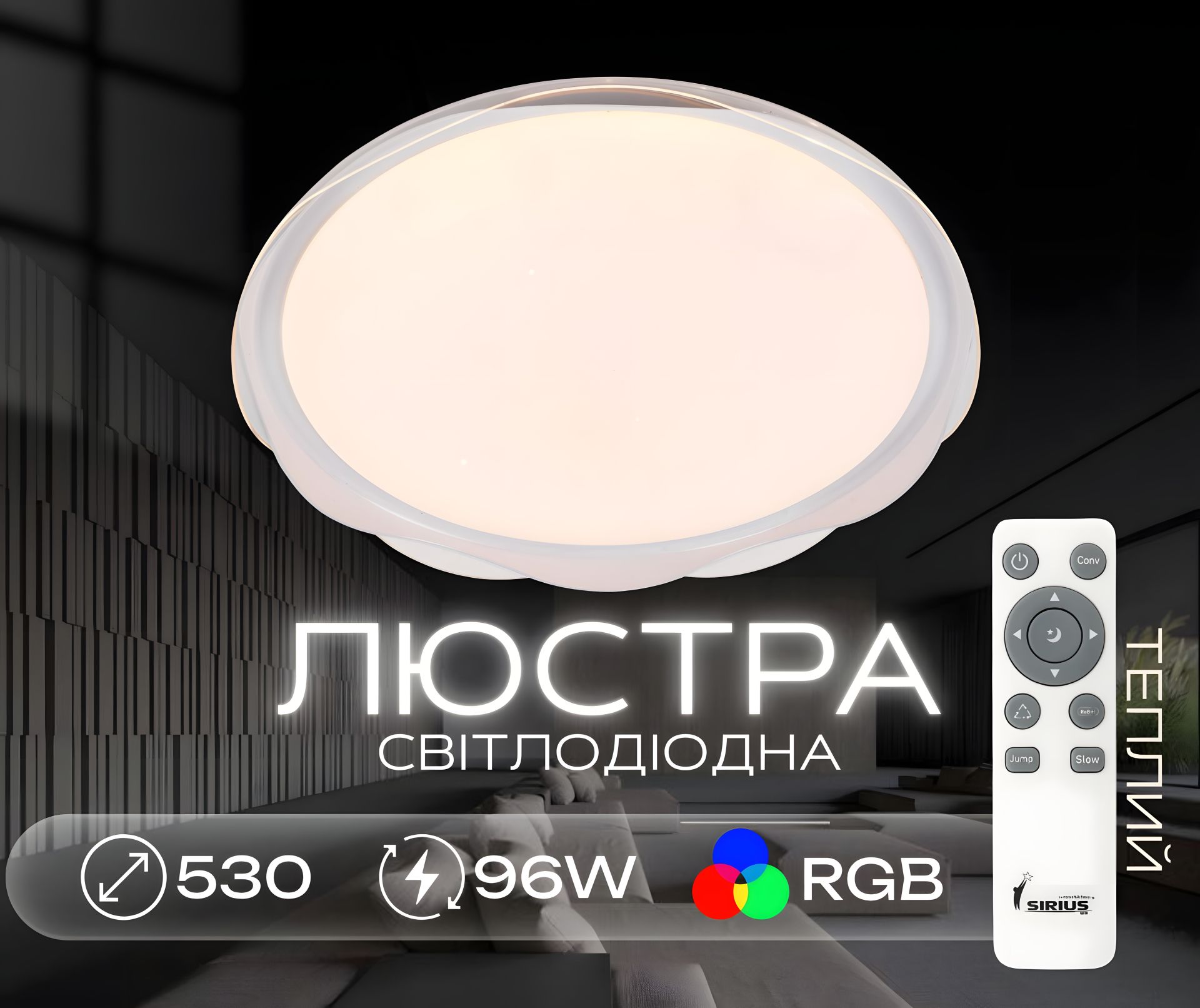 Смарт світлодіодна люстра Sirius GLX-19529-530 96W White (RGB)