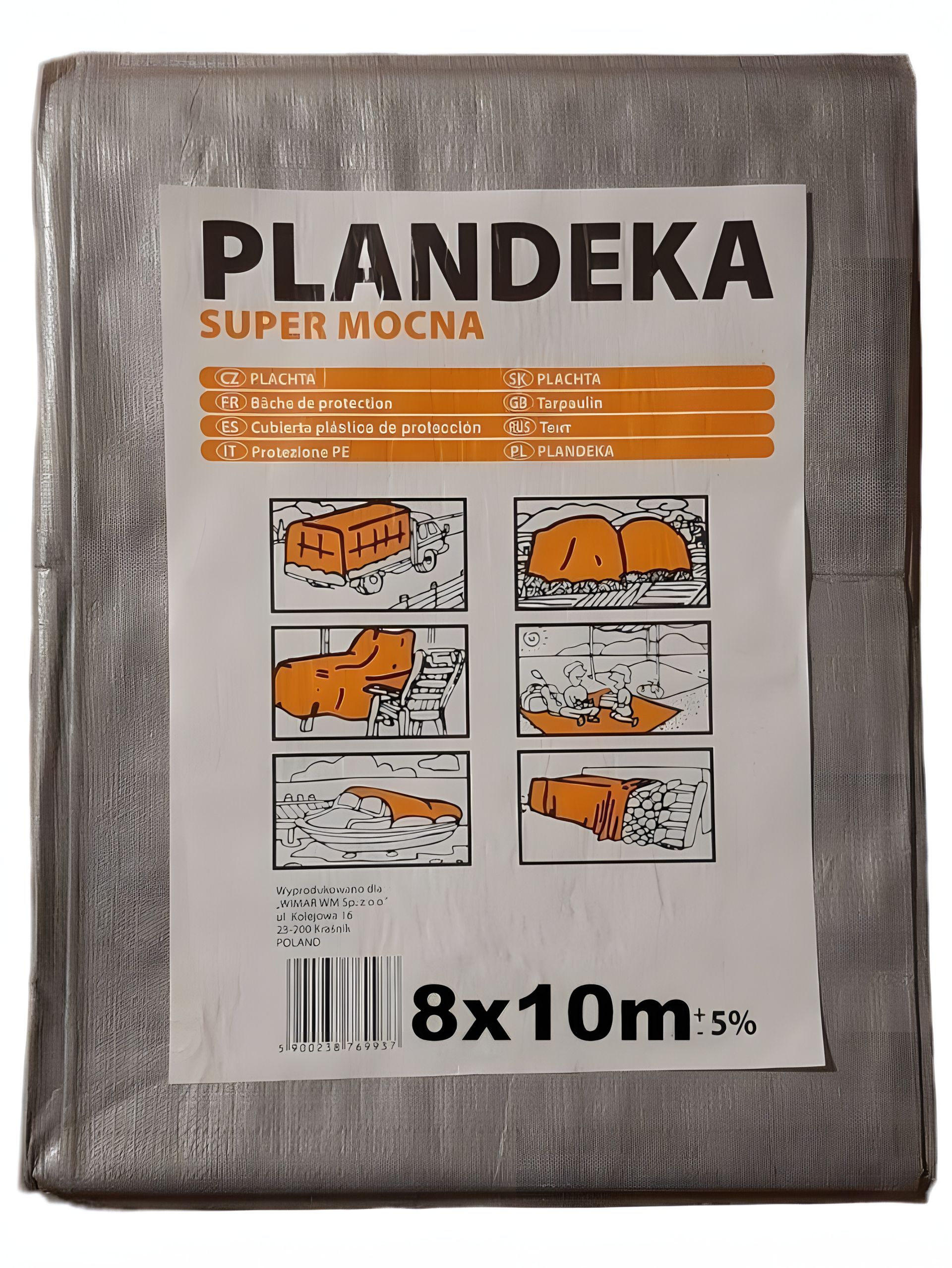 Універсальний захисний тент Пландека Тарпаулин від польського бренду Wimar розміром 8х10м і щільністю 160г/м² – ідеальне рішення для захисту від дощу, снігу, сонця та пилу. Виготовлений із міцного плетеного поліпропілену з ламінованим покриттям, тент забезпечує надійну гідроізоляцію та стійкість до зовнішніх впливів.