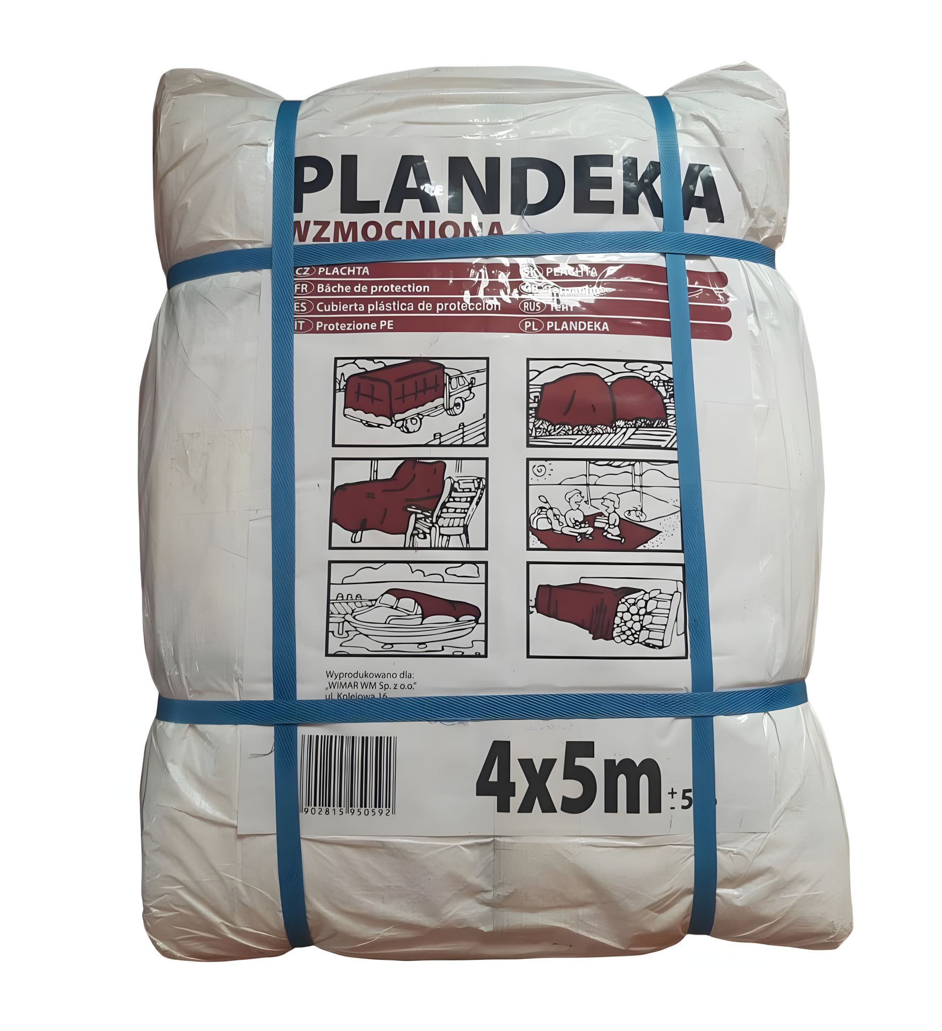 Універсальний захисний тент Пландека Тарпаулин від польського бренду Wimar розміром 4x5м і щільністю 90г/м² – ідеальне рішення для захисту від дощу, снігу, сонця та пилу. Виготовлений із міцного плетеного поліпропілену з ламінованим покриттям, тент забезпечує надійну гідроізоляцію та стійкість до зовнішніх впливів.