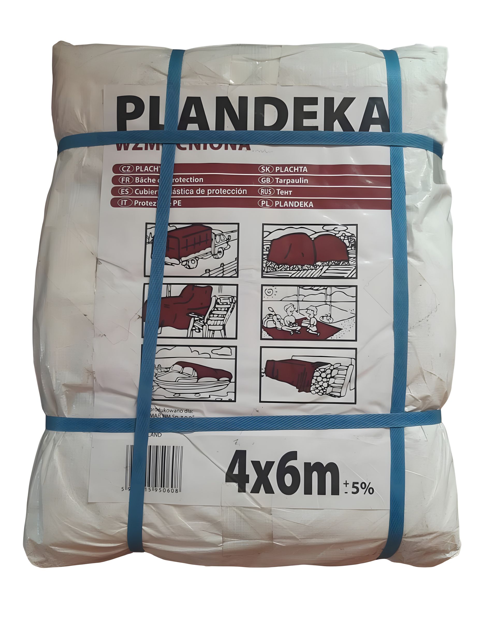 Універсальний захисний тент Пландека Тарпаулин від польського бренду Wimar розміром 4x6м і щільністю 90г/м² – ідеальне рішення для захисту від дощу, снігу, сонця та пилу. Виготовлений із міцного плетеного поліпропілену з ламінованим покриттям, тент забезпечує надійну гідроізоляцію та стійкість до зовнішніх впливів.
