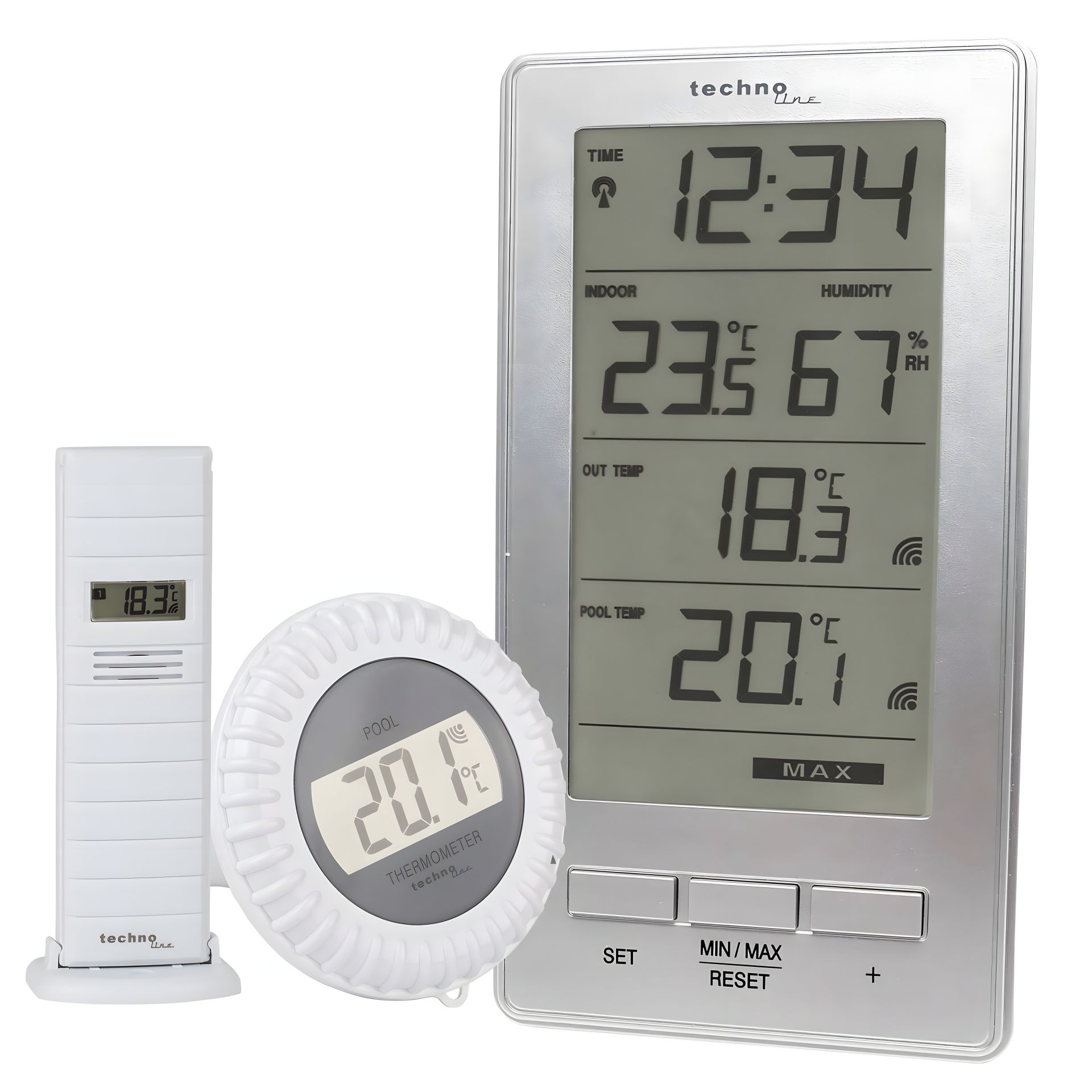 Тепер для того, щоб знати температуру води в басейні не обов'язково щоразу підходити і опускати градусник у воду. Термогігрометр Technoline WS9069 має водонепроникний температурний датчик, який перебуваючи в басейні, передає температуру на відстані до 100 метрів за допомогою радіосигналу на основний блок з дисплеєм, встановлений у будинку. При цьому основний блок також вимірює внутрішню температуру, вологість, відображає точку роси, приймає показання температури повітря від другого зовнішнього виносного датчика і показує мінімальні і максимальні значення цих параметрів.