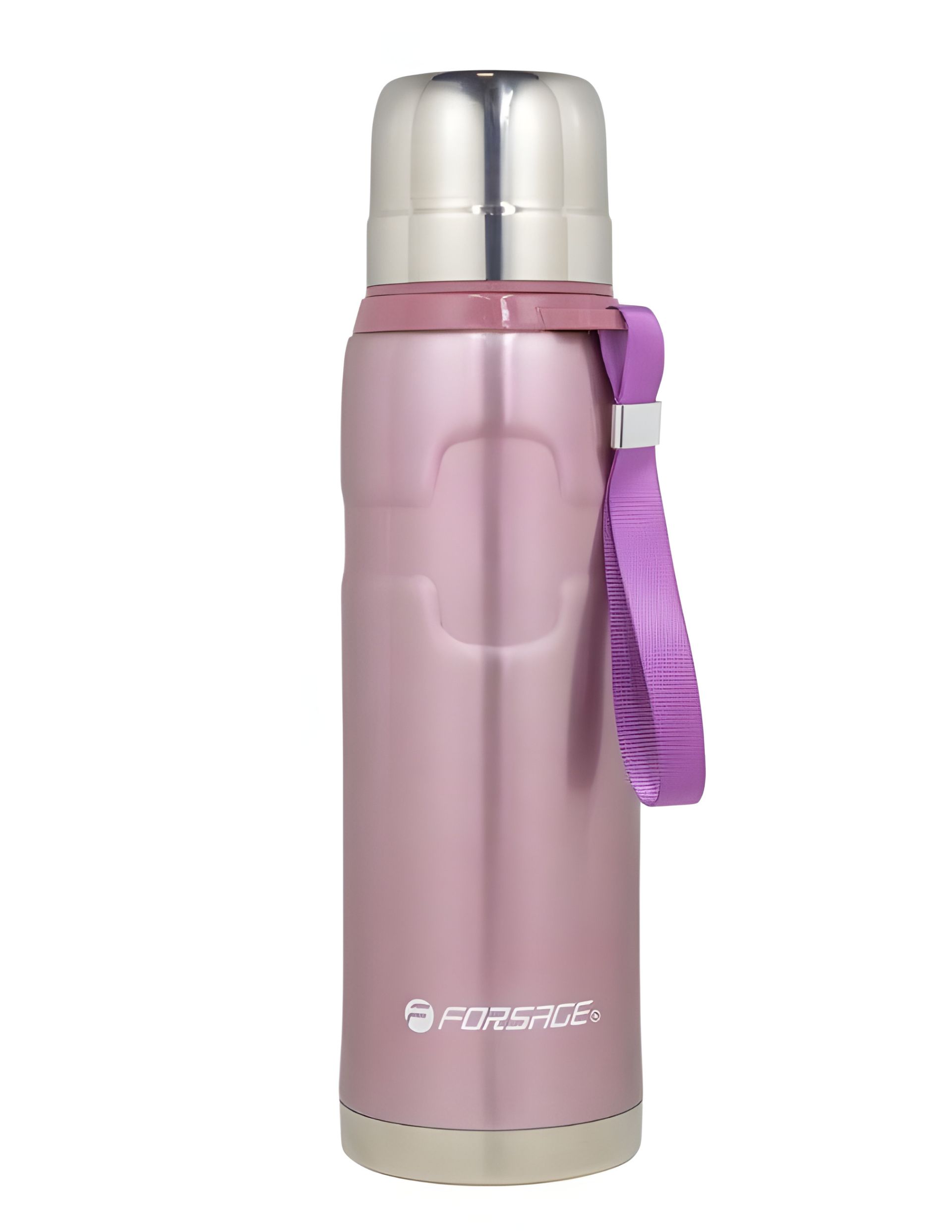 Ергономічний термос Forsage F-750P в рожевому кольорі з нержавіючої сталі об'ємом 750 мл - чудове рішення для чаю, кави або трав'яних настоїв. Стійкий до механічних пошкоджень, компактний та універсальний, він підійде для поїздок на природу, кемпінгу, роботи чи навчання. Термос безпечний і тримає температуру до 24 годин, що дозволяє приготувати відвари з трав і насолоджуватися гарячим напоєм навіть далеко від дому. Стильний дизайн, ергономічна кришка-чашка, зручна шийка та текстильний ремінець з довжиною 13 см роблять використання термоса ще більш комфортним. Кришка-чашка має подвійні стінки, не нагрівається і не обпалює руки, а пробка з термоізоляцією і механізмом, що перекидається, зі спеціальним відливом забезпечує захист від протікання і зручність наливання. Forsage – чудовий подарунок на будь-яку подію. Перед використанням рекомендується нагріти (остудити) внутрішню колбу, заливши окропу (холодну воду) на 2-3 хвилини (залежно від того, який напій буде використовуватися).