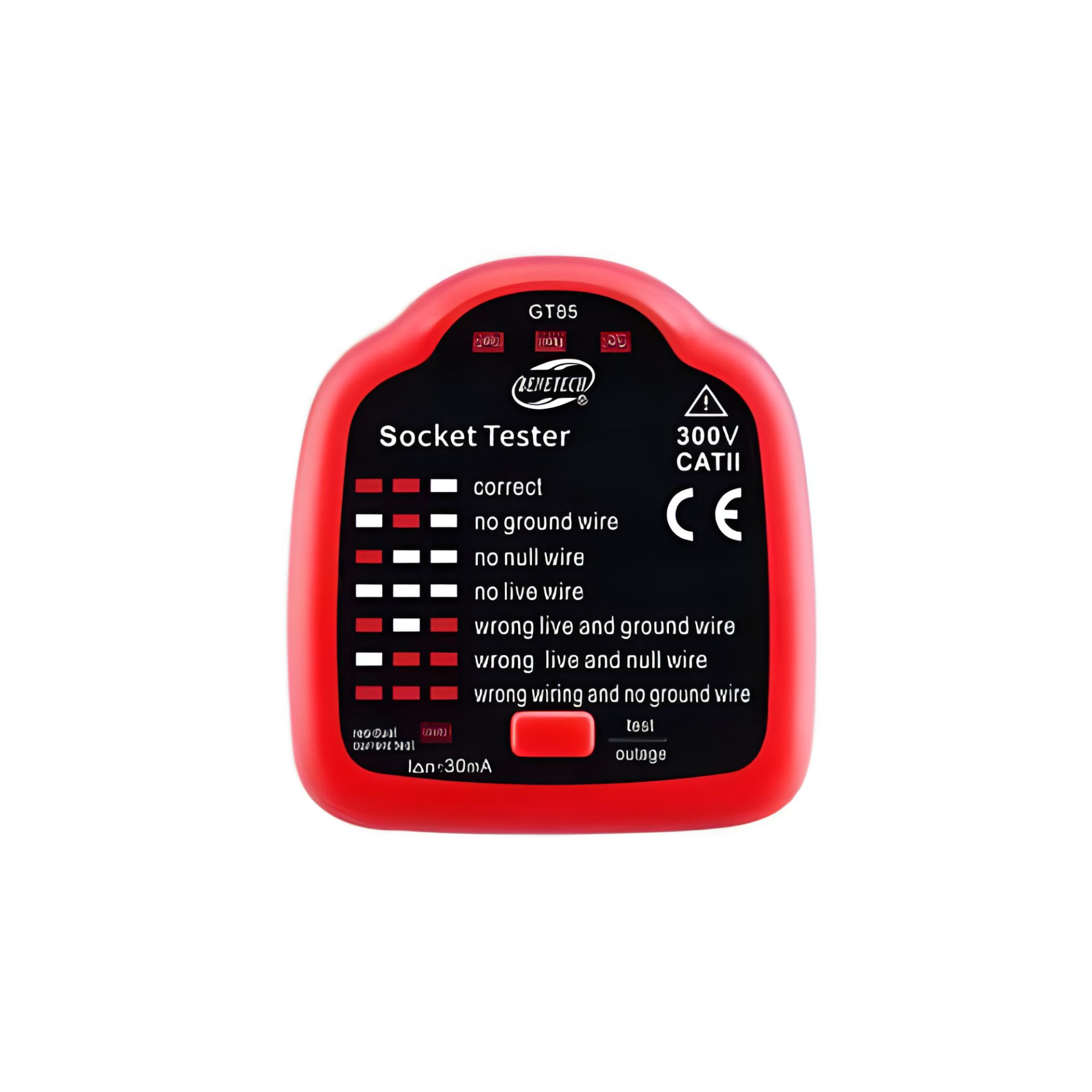 Benetech GT85 – професійний прилад для перевірки підключення фази, нуля та заземлення в розетці, а також перевірки спрацьовування ПЗВ шляхом створення навантаження 30 мА.