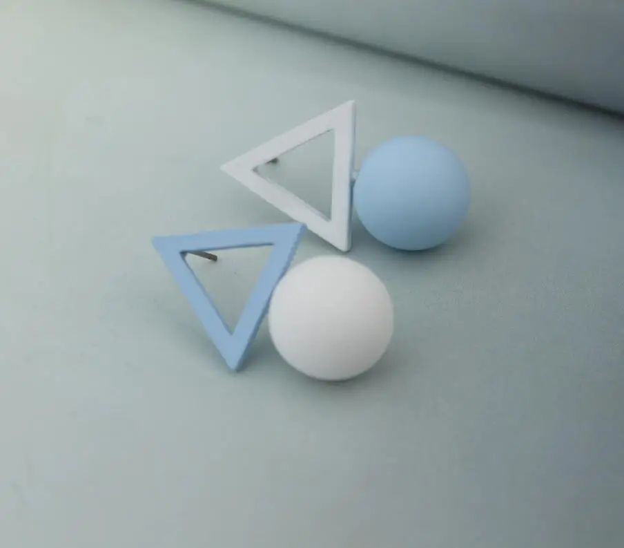 Сережки трикутник і куля чорно-зелені та біло-блакитні геометрія