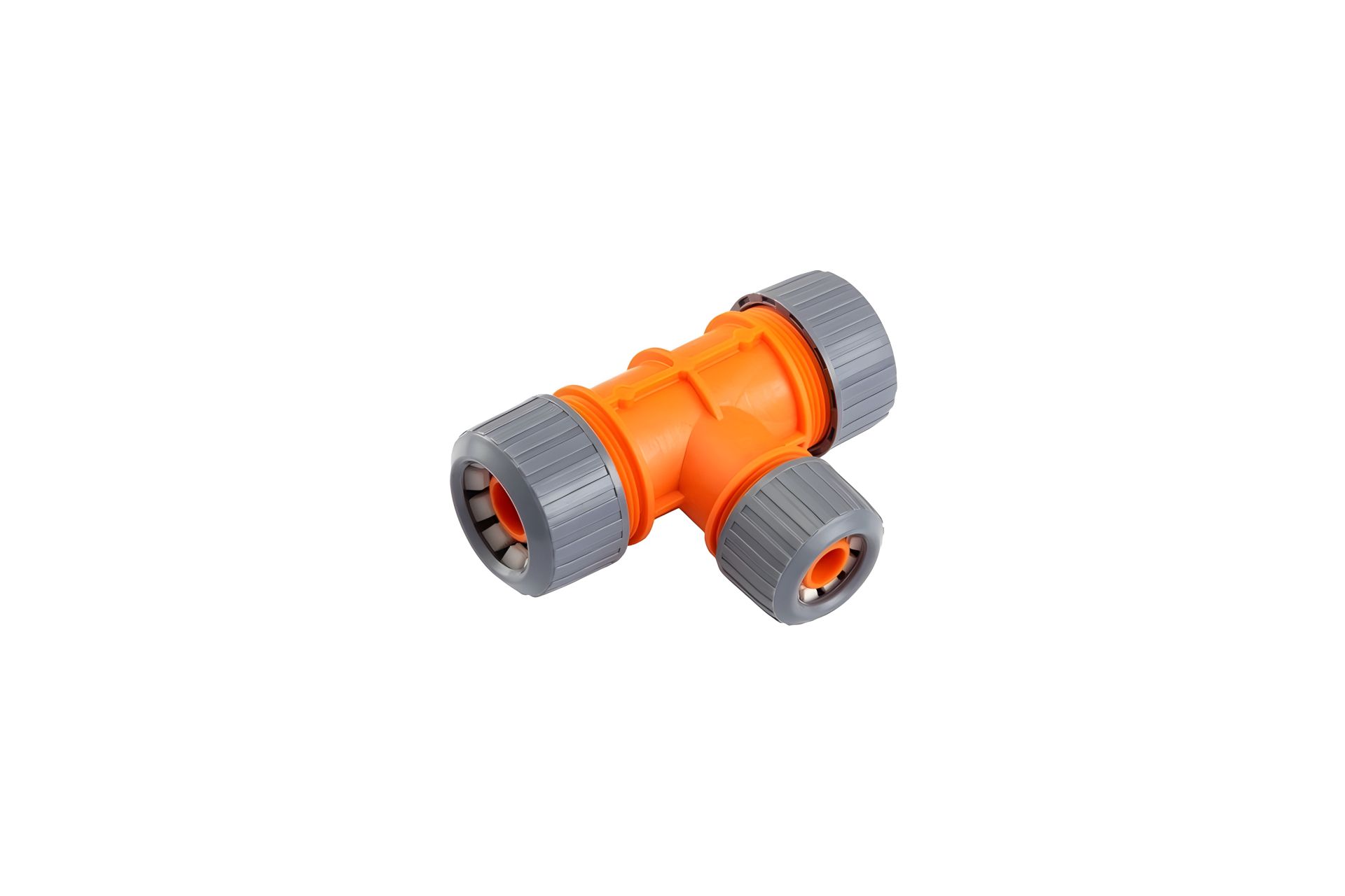 Трійник з'єднувальний для шланга "-" - це практичний елемент системи поливу, що дозволяє з'єднати або розгалужити потік води між трьома шлангами різного діаметру.