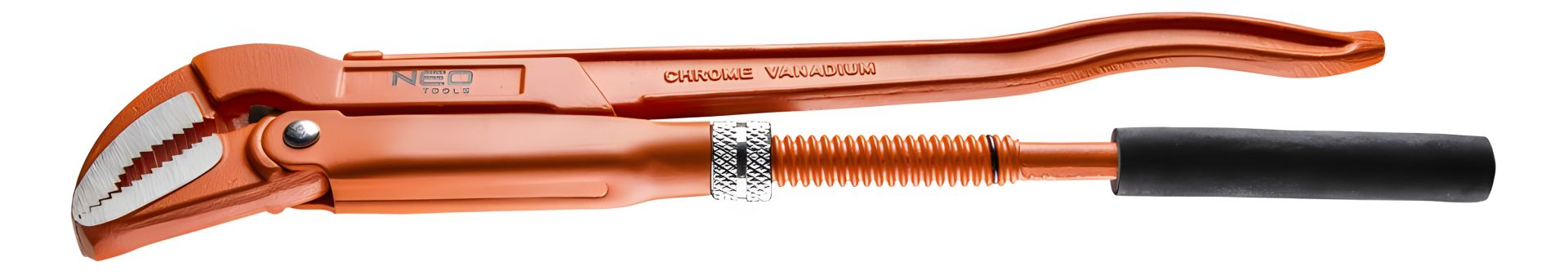 Трубний ключ NEO. Кований із високосортної хромованадієвої сталі, зі шліфованими та полірованими губками. Рукоятка з антиковзким покриттям добре лягає у долоню та забезпечує міцне захоплення.