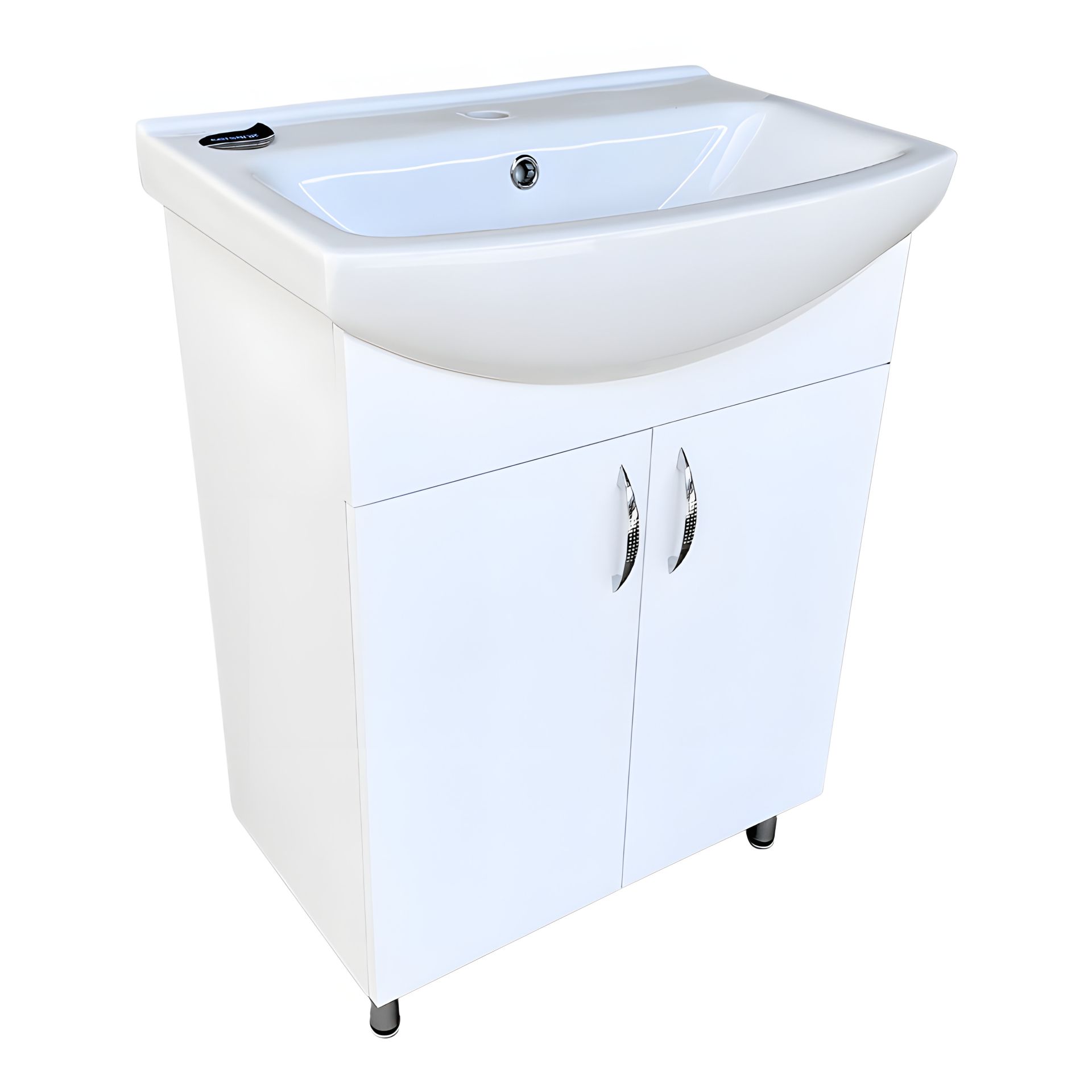 Тумба у ванну GT home Економ Т-1 55 см (Церсанія) виконана в білому кольорі і виготовлена з ДСП. Ширина тумби складає 550 мм зі встановленим умивальником (без умивальника ширина тумби на 30-50 мм менше), глибина 310 мм, а висота 780 мм. Тумба має дві розпашних шафки. Ця тумба входить в серію Економ і підходить для умивальників серії Cersania. Гарантійний термін на товар складає 24 місяці. В комплекті немає умивальника і сифона, їх можна замовити додатково: Умивальник меблевий Cersanit Cersania 55 см