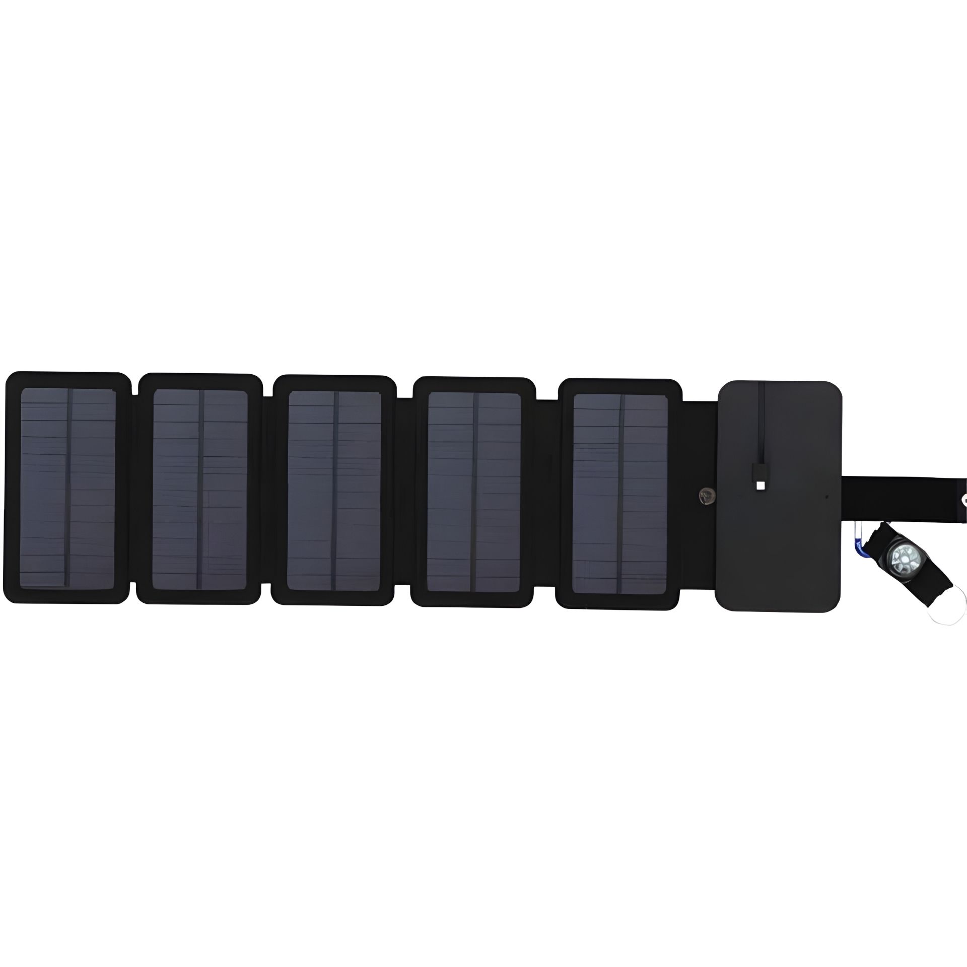 - 5 складних сонячних панелей - забезпечують зарядний струм до 1 Ампера при напрузі 5 - 5,5 вольт.