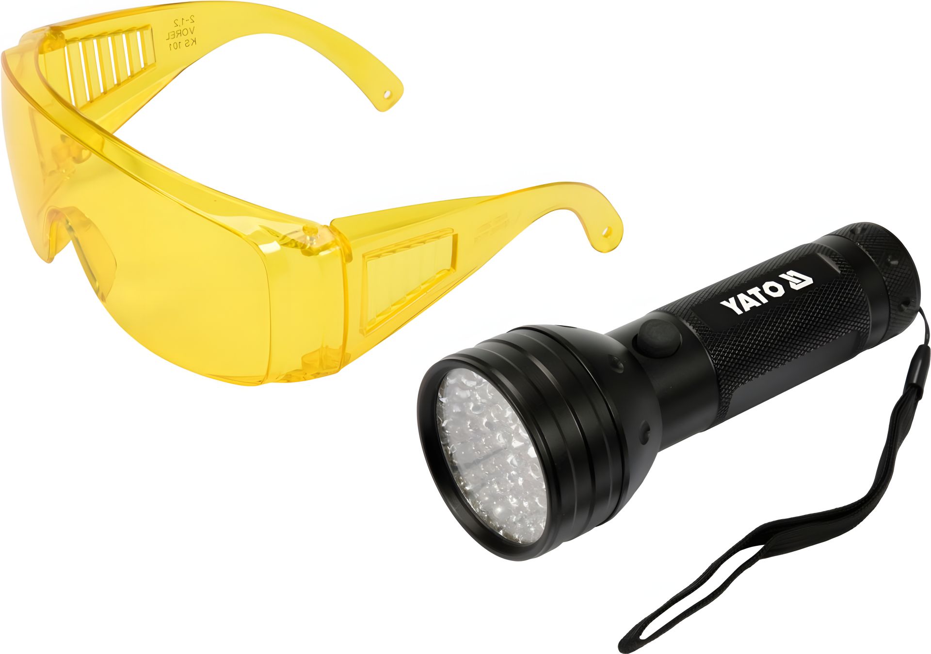 Ультрафіолетовий ліхтар з окулярами для визначення протікання рідин та перевірки банкнот Yato YT-08581