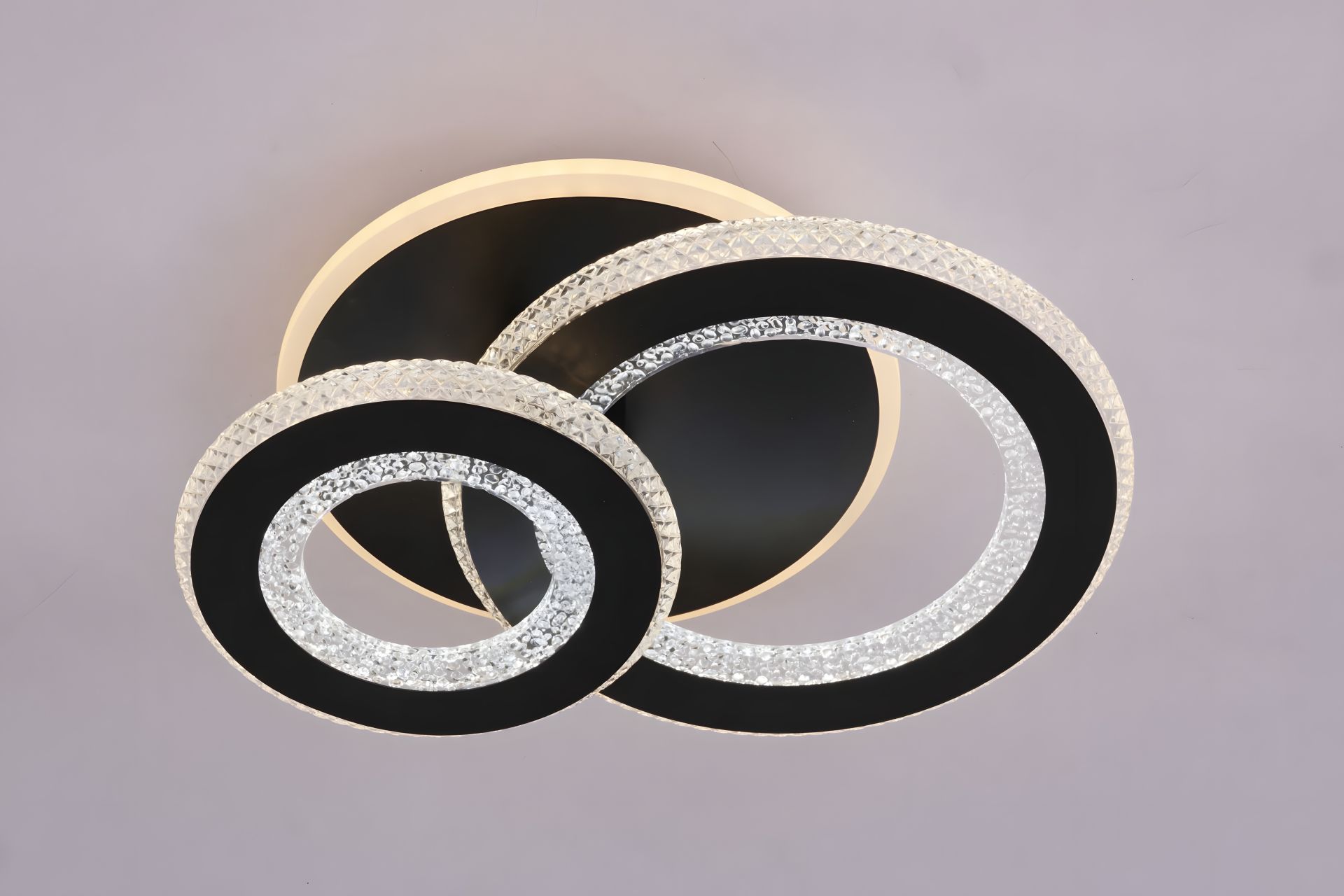 Люстра світлодіодна V K38553-2 BK — сучасний стельовий світильник чорного кольору з декоративними круглими елементами освітлення. Світло генерується вбудованою LED-стрічкою, яка рівномірно розподіляє світловий потік, створюючи комфортне та м’яке світіння при низькому енергоспоживанні.