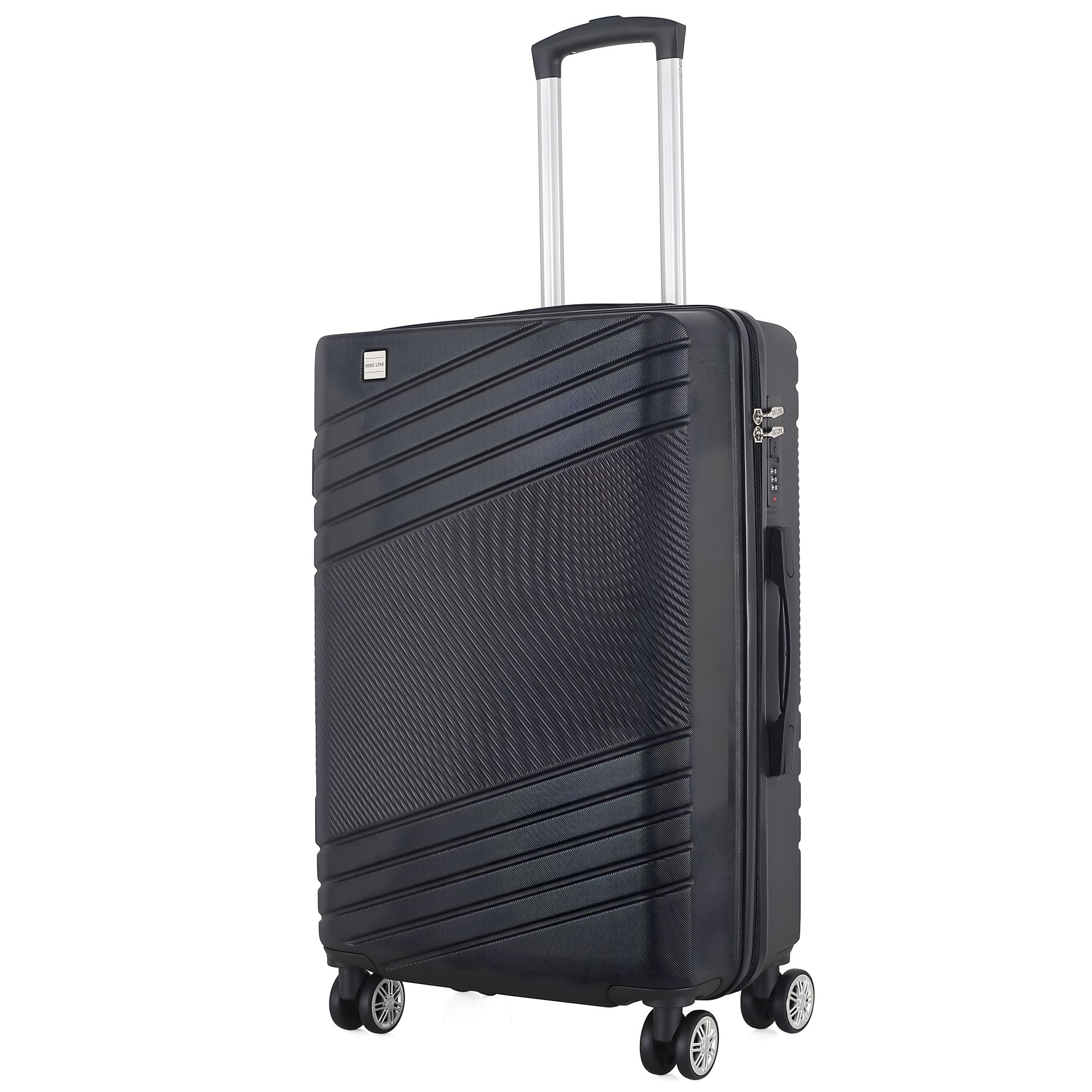 Валіза Semi Line T5789 має рельєфні лінії, що перетинають корпус з більш дрібним рифленим профілем під різними кутами. Завдяки цьому будь-які поверхневі пошкодження корпусу під час використання валізи будуть непомітними. Вона оснащена легкою алюмінієвою телескопічною ручкою, що фіксується в двох положеннях, а ручка для перенесення валізи має м'яку гелеву підкладку. "Утоплений" кодовий замок покликаний захистити вміст вашої валізи, а також не виступає над корпусом, отже його неможливо випадково пошкодити при транспортуванні валізи.
