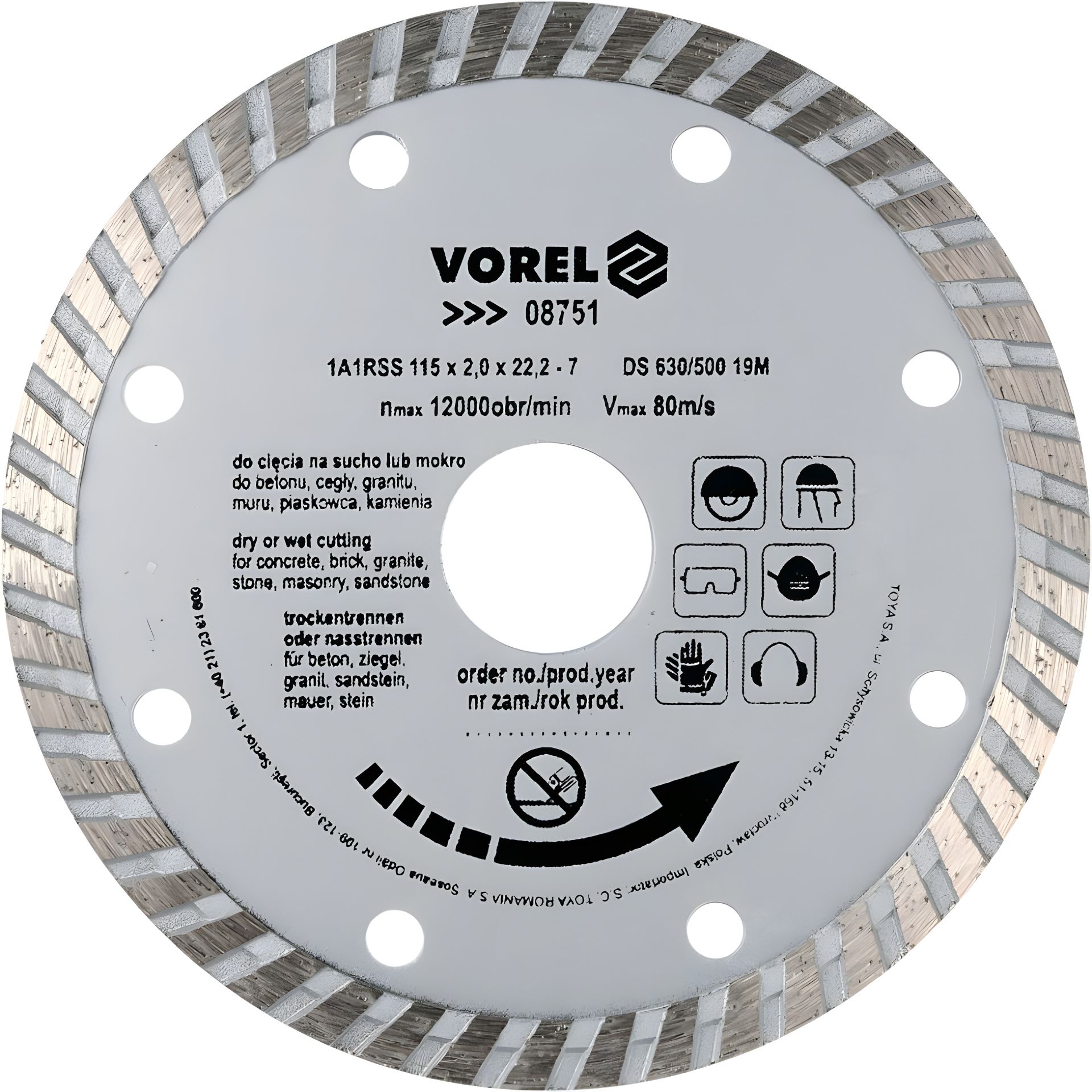 Відрізний алмазний диск "TURBO" 115 мм Vorel 08751