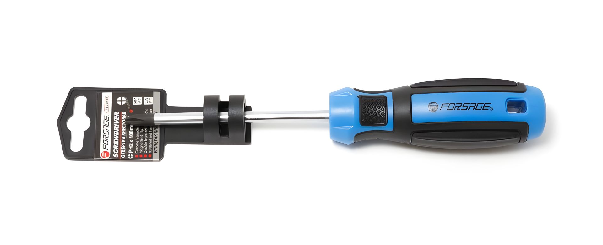 Магнітна хрестова викрутка PH2х100мм на пластиковому утримувачі FORSAGE F-7111002