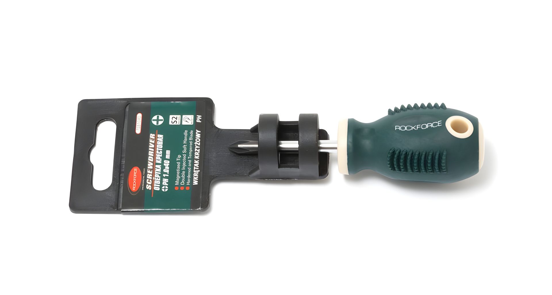 Викрутка хрестова магнітна "Profi" S2 PH1.0x40мм, пластиковий тримач ROCKFORCE FORSAGE RF-7031040