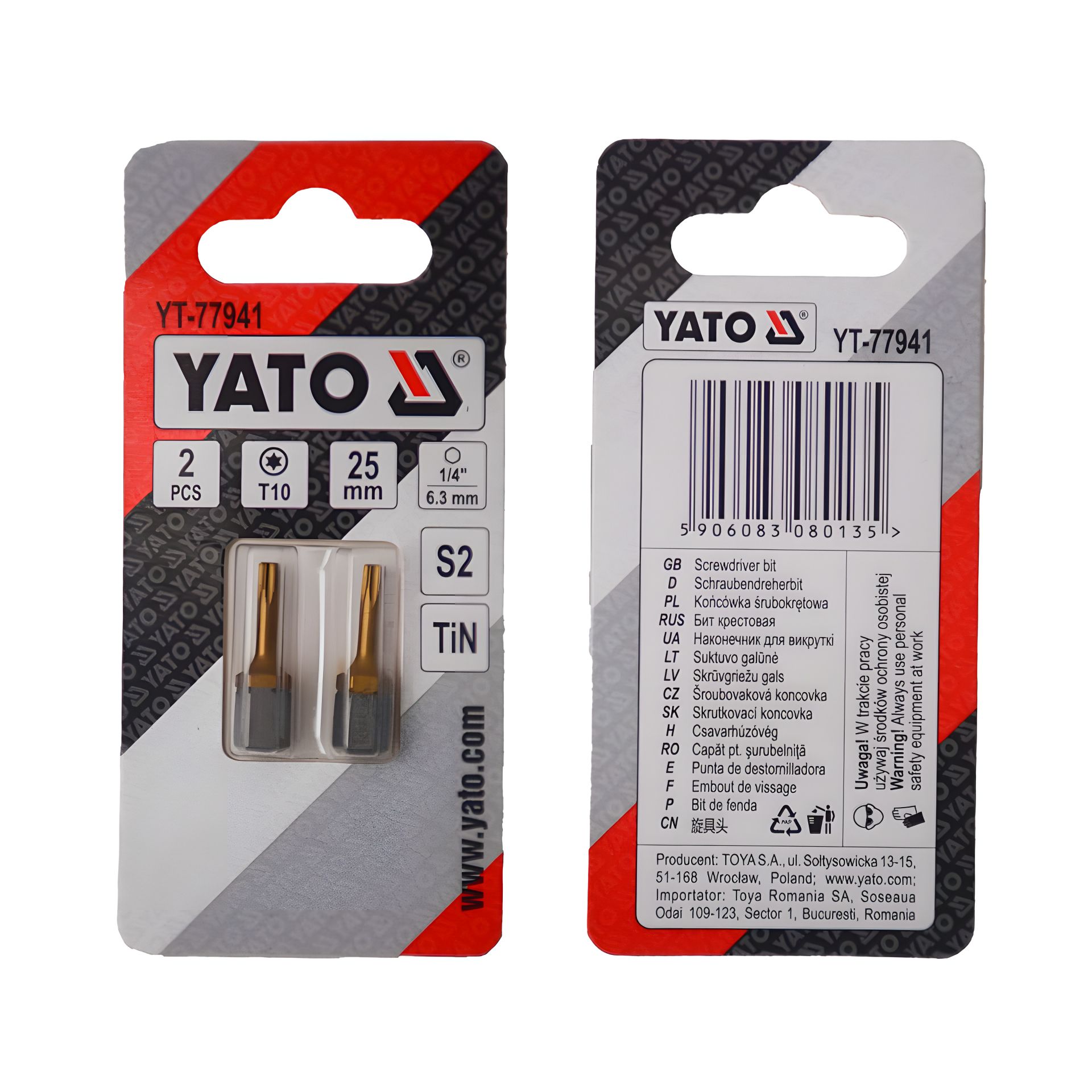 Викрутка TORX T10 для насадок, HEX 1/4", 2 шт. Yato YT-77941