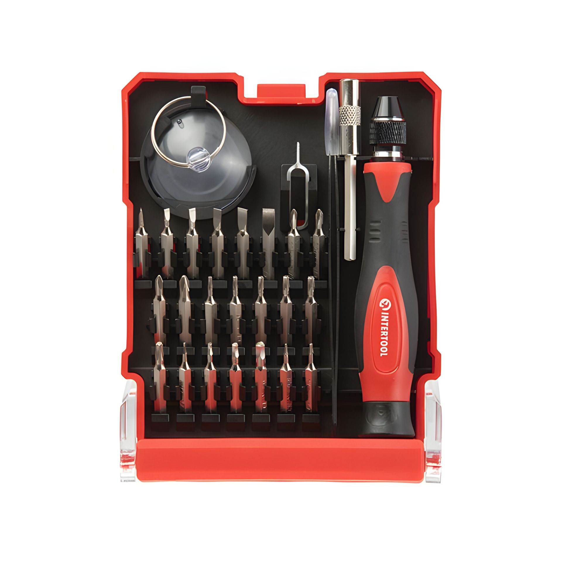 Цей комплект прецизійних інструментів INTERTOOL ідеально підходить для ремонту різноманітних електронних пристроїв, таких як комп'ютери, ноутбуки, планшети, ігрові приставки, телефони, електронні іграшки, побутова техніка тощо. Легко впорається із завданнями, такими як заміна екранів, важливих електронних компонентів, чищення, демонтаж і реорганізація обладнання. Підходить як для професійних ремонтних робіт, так і задовольнить потреби домашнього використання.