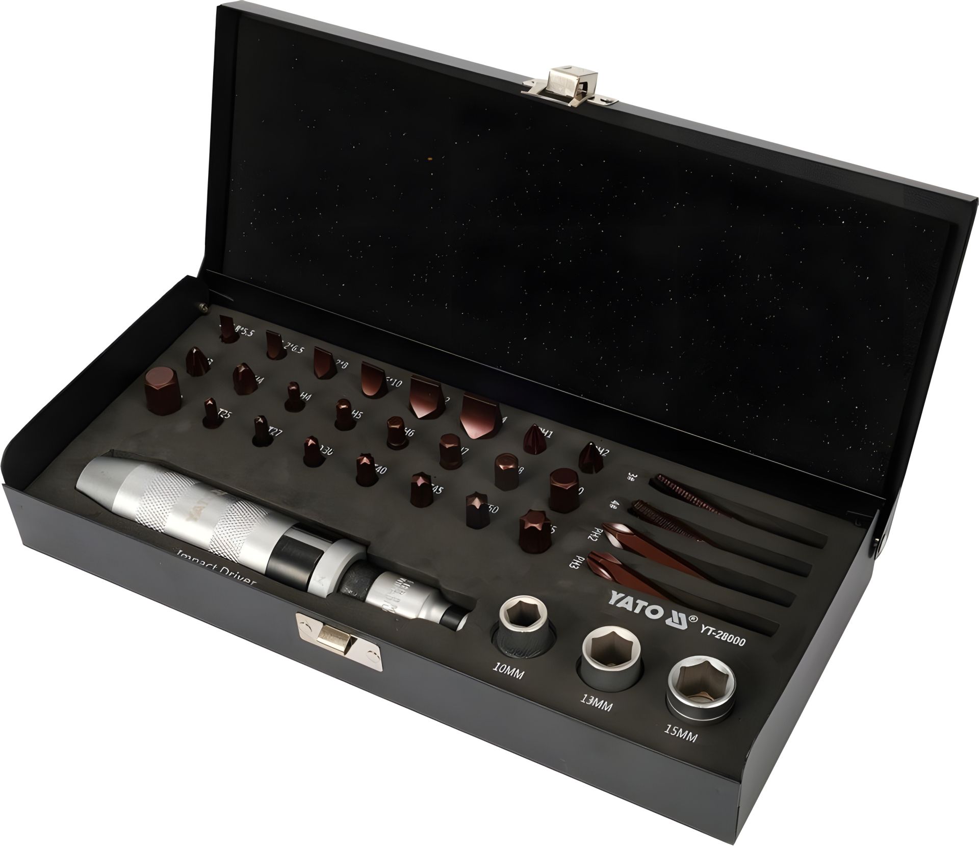 Ударна реверсивна викрутка L= 168 мм з насадками та головками, 32 елем. Yato YT-28000