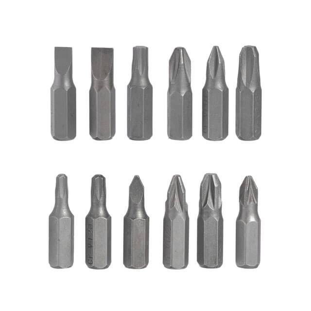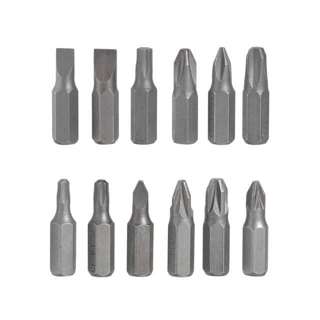 Біти: SL4, SL5, SL6, PH1, PH2, PH3, T15, T20, T25, PZ1, PZ2, PZ3.