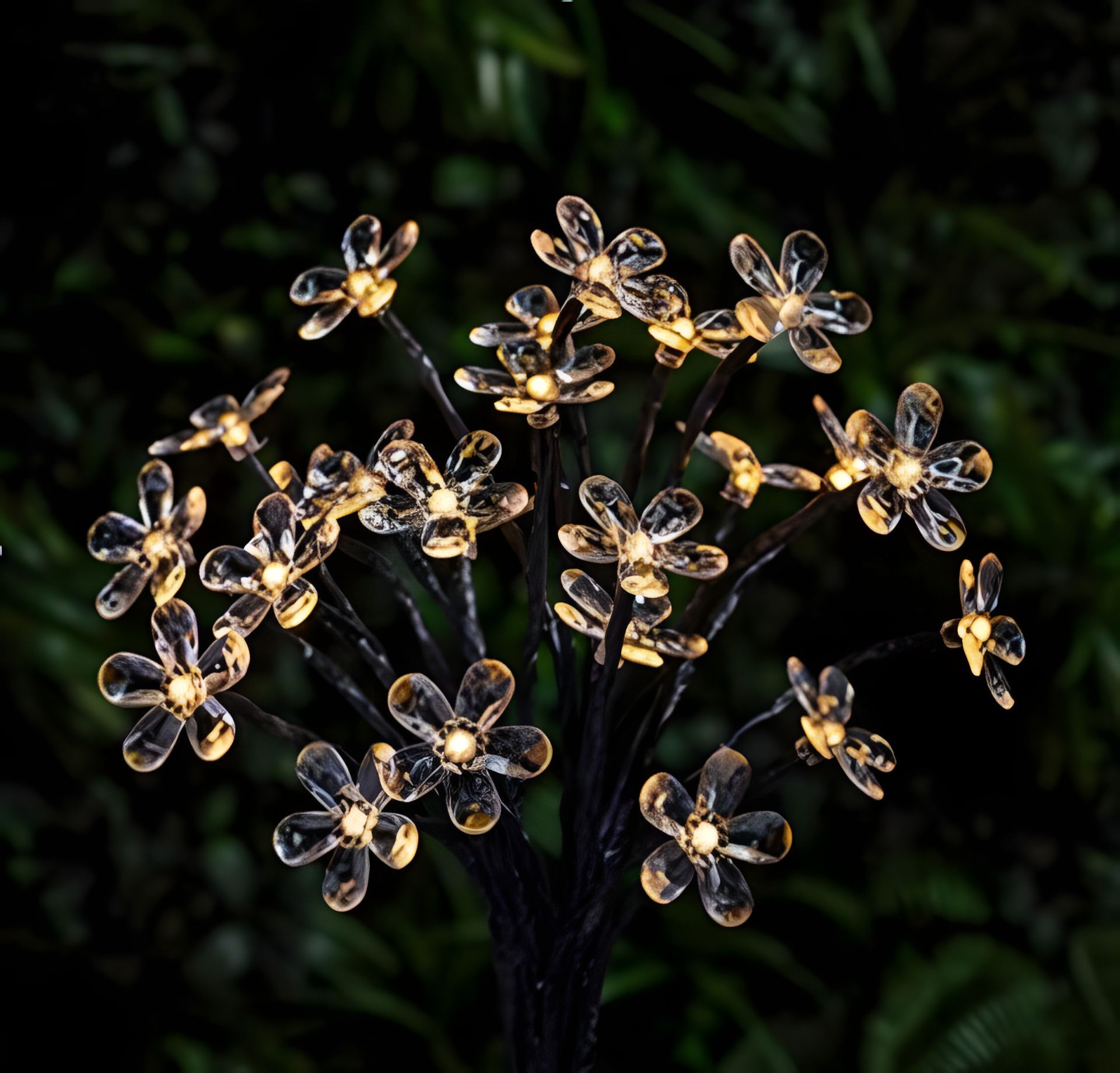 Сонячна лампа для квітів, сонячна панель Amorpghous, 1 батарея AAA, що перезаряджається, 20 теплих білих світлодіодів на кожній стійці, всього 60 світлодіодів, висота 60 см, горить постійно і блимає