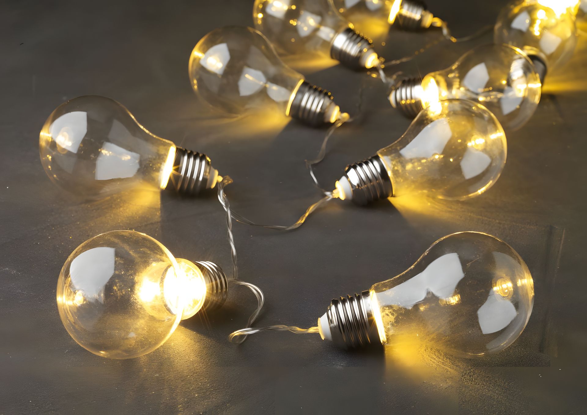 Сонячна панель аморфна, 1 акумуляторна батарея NI-MH типу AAA, 10 шт. теплого білого світлодіода, відстань від сонячної панелі до першого світлодіода 2 м, відстань між світлодіодами 20 см, загальна довжина 3.8 м, блимає