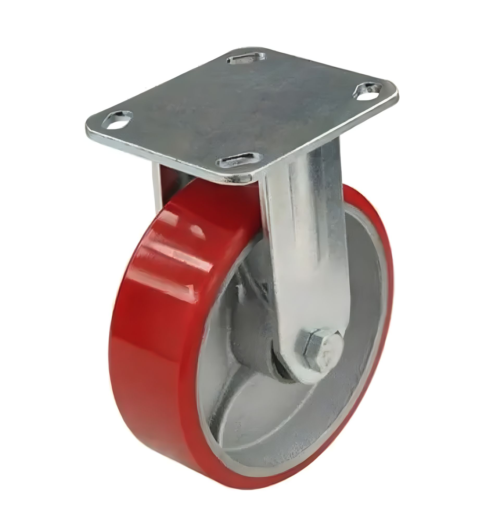 Основа цього більш завантаженого колеса відлита з чавуну, яке зверху покрите поліуретановим обідком. Такий дует дає змогу з легкістю витримувати великі навантаження до 320 кг і водночас зберігається легкість ходу навіть за невеликих перешкод на шляху. Укомплектоване чавунне колесо з поліуретановим контактним шаром роликовим підшипником і неповоротним кронштейном з оцинкованого металу завтовшки 5 мм. Завдяки контактному покриттю з поліуретану, воно має робочий температурний діапазон від -40 до +50 градусів. Ця шинка надає колесу якісне зчеплення з поверхнею й не ушкоджує його. Взаємодіє з оліями та кислотами, але боїться гарячої води та парів.