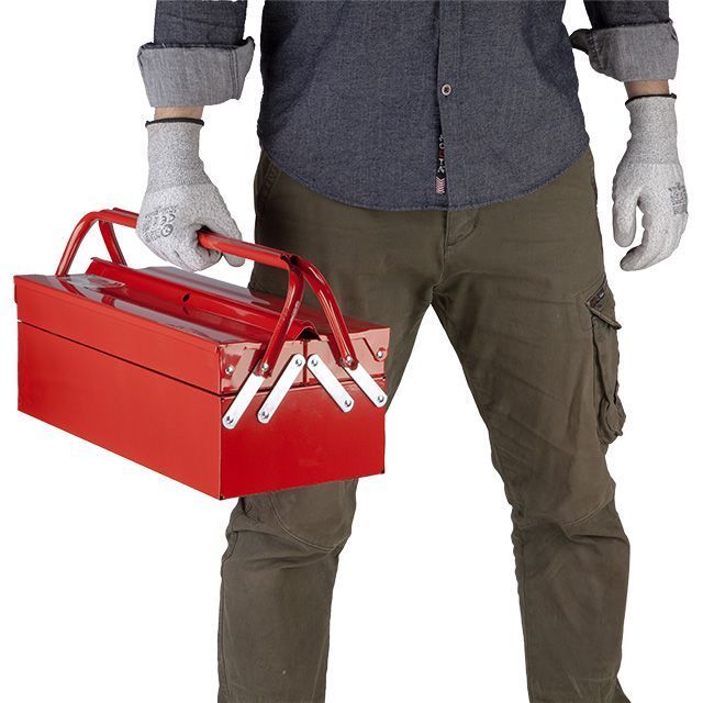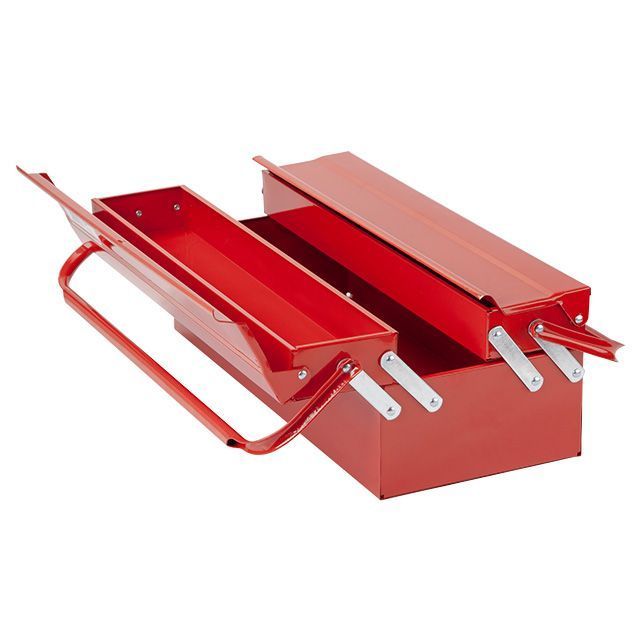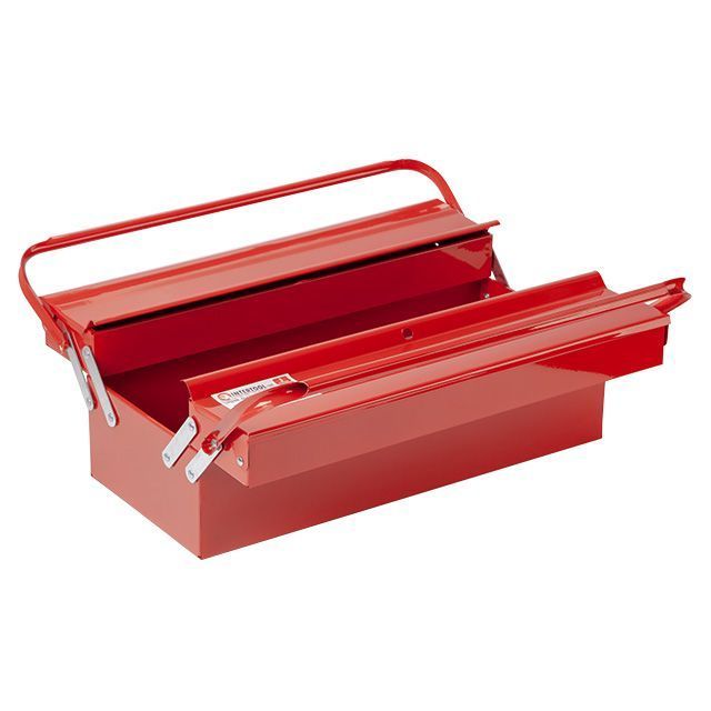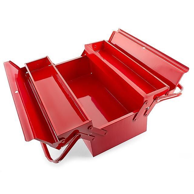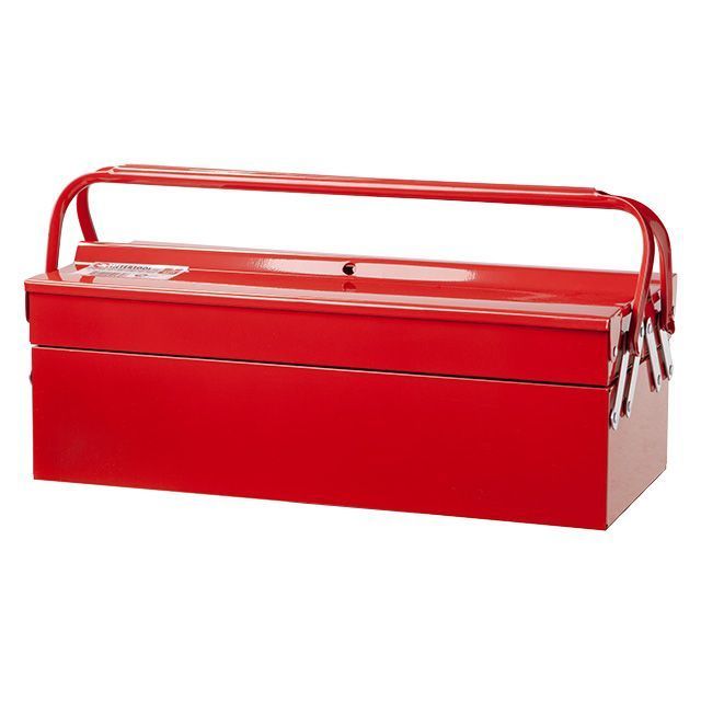 При відкриванні верхні відділення висуваються, відкриваючи повний доступ до вмісту та нижнього відділення для зберігання. Малі бокси роз'їжджаються убік, забезпечуючи повний огляд внутрішнього простору кожного з них. На верхній кришці передбачений отвір для замка для безпечного зберігання інструменту. Також дві металеві ручки для зручного перенесення та транспортування.
