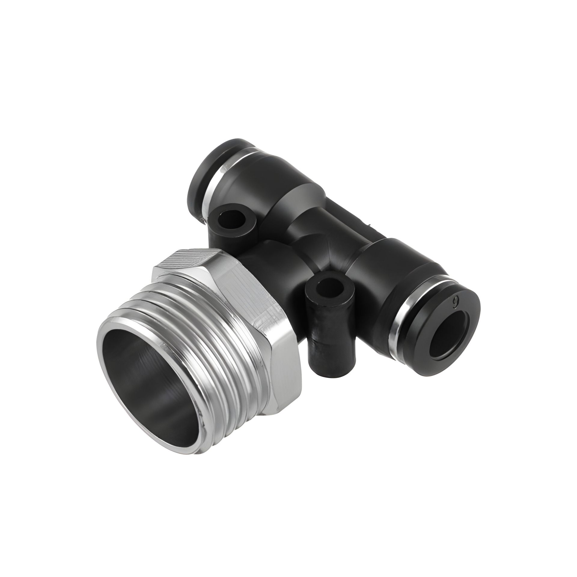 Цангове з'єднання T-подібної форми використовується для створення пневматичних магістралей і для монтажу пневмосистем. Забезпечує повністю герметичне з'єднання різних пневматичних шлангів без пошкодження їхньої поверхні (PU, PE, PA) - поліуретанових, поліетиленових, поліамідних тощо.