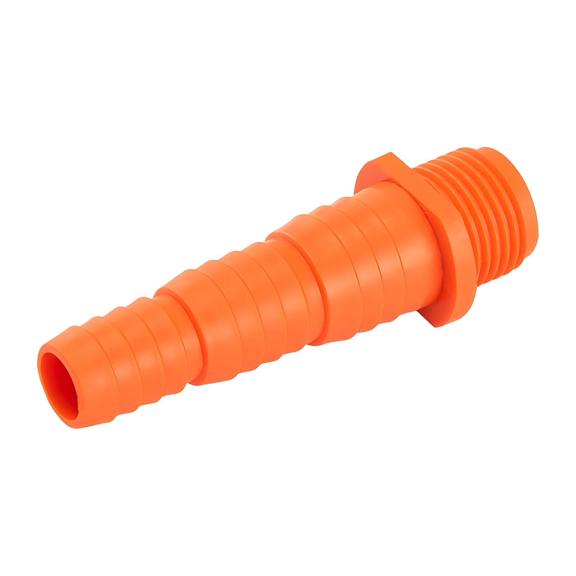Універсальний з'єднувач для швидкого та надійного підключення шлангів різного діаметру (½", ⅝", ¾") до системи поливу. Оснащений зовнішнім різьбленням ½", що забезпечує сумісність з широким спектром поливального обладнання. Виготовлений із міцних матеріалів, що гарантують довговічність та надійну фіксацію з'єднання.