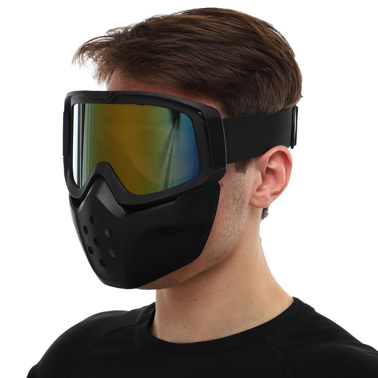 - Нижня частина маски відстібається від окулярів, окуляри можна носити окремо.