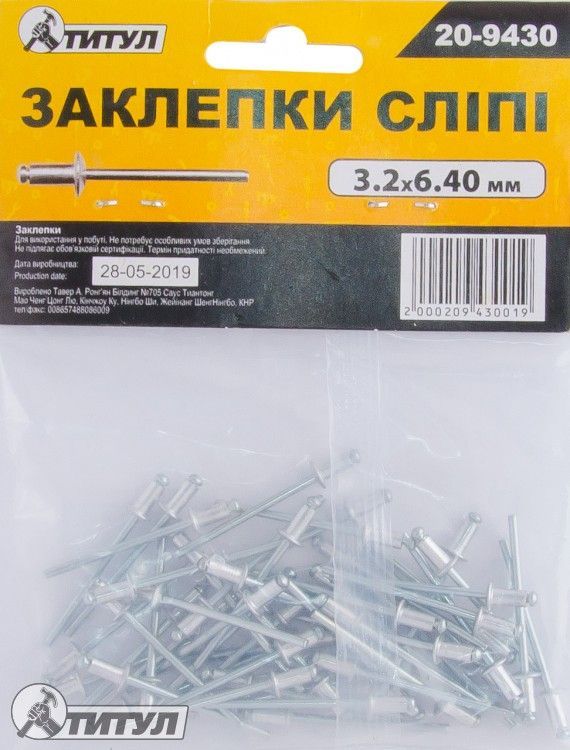 Заклепки витяжні алюмінієві 3.2х12.00 мм 50 шт MASTERTOOL 20-9460