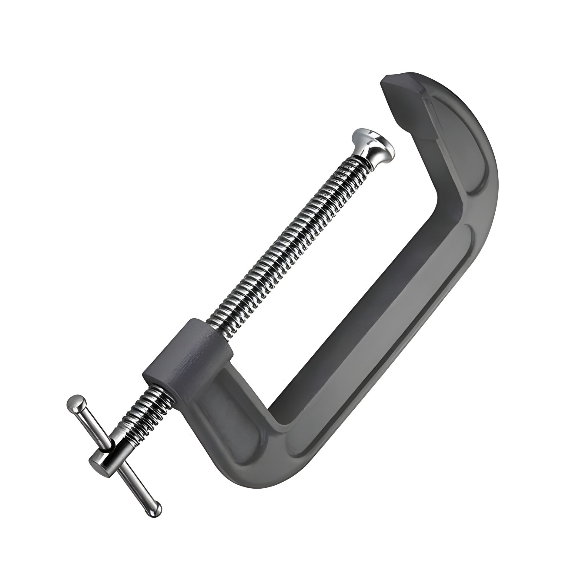 G-подібна струбцина виготовлена із міцного металу, покрита порошковою фарбою, стійкою до корозії. Гвинт надійно фіксує заготовки завдяки рухливому штифту, який дозволяє сильніше їх стягувати.