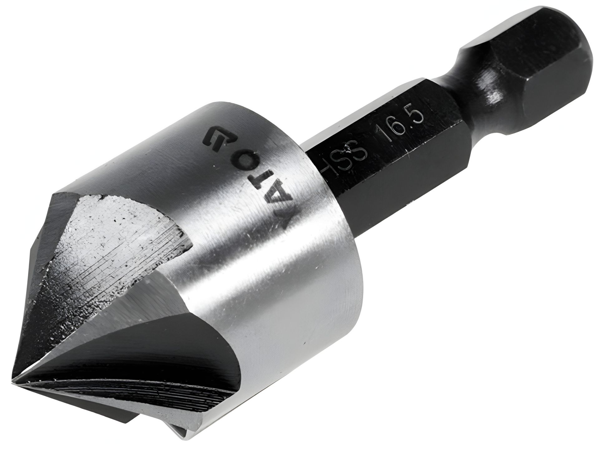 Зенкер конічний по металу YATO: HSS, Ø= 16.5 мм, l= 45 мм, 5 подружжя, HEX - 1/4"