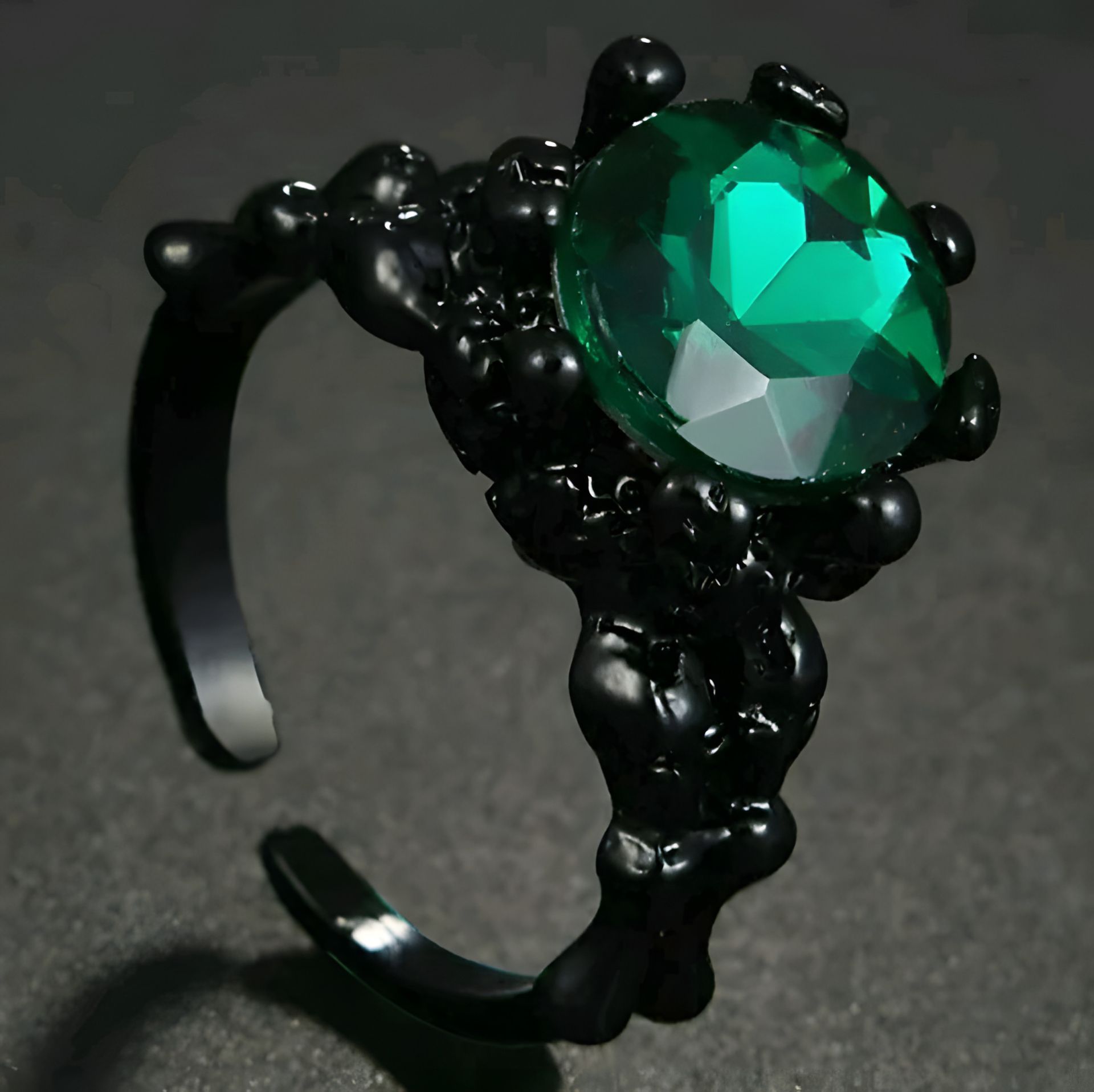 Чорне кільце жіноче з зеленим каменем, розмір регулюється