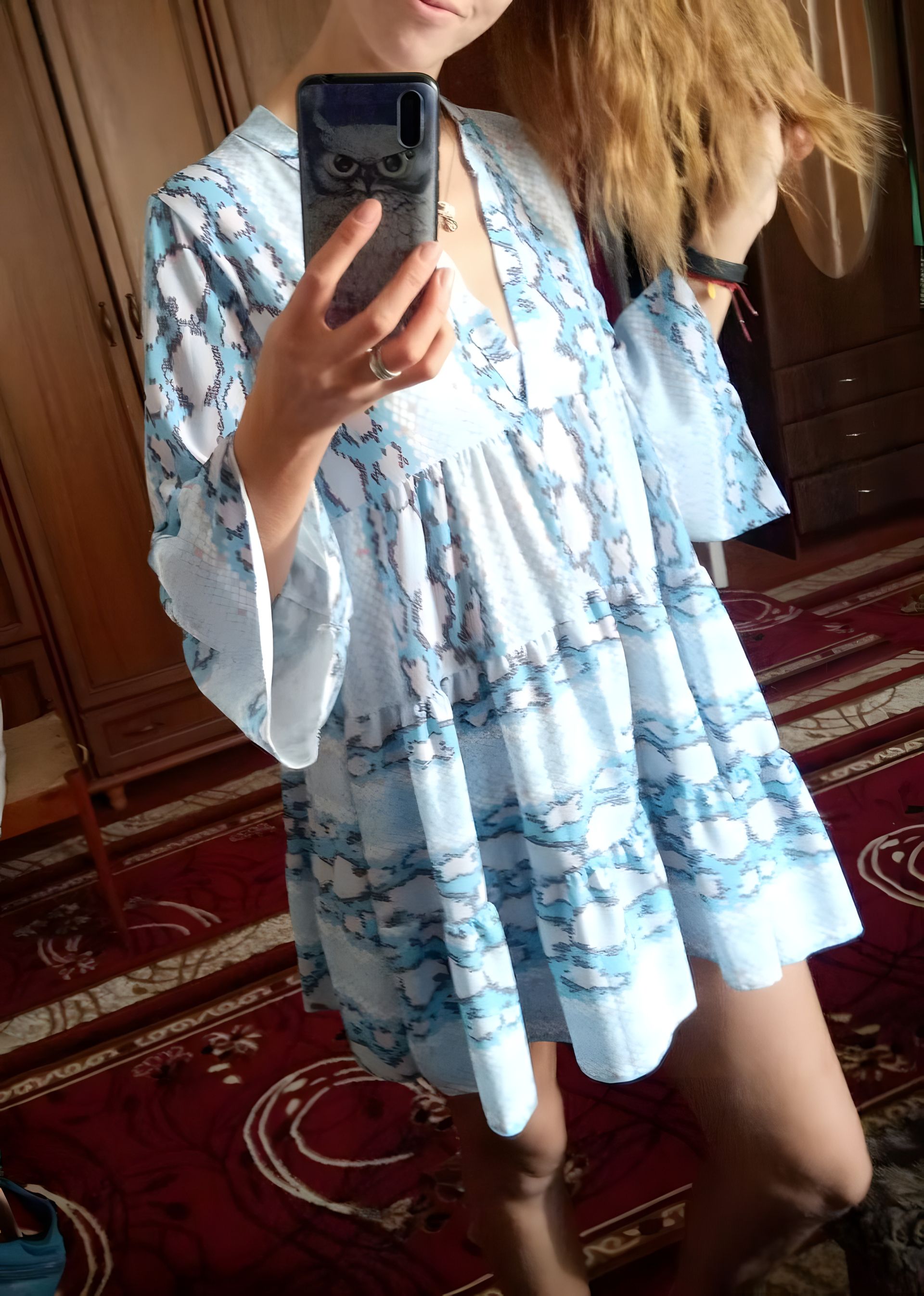 Модне та стильне плаття, принт «зміїна шкіра»; Жіночі вечірні плаття, елегантне плаття з v-подібним вирізом жіночі вільні повсякденні сукні у вінтажному стилі, плаття-трапеція з розкльошеним рукавом. Стиль рукава на останньому фото.