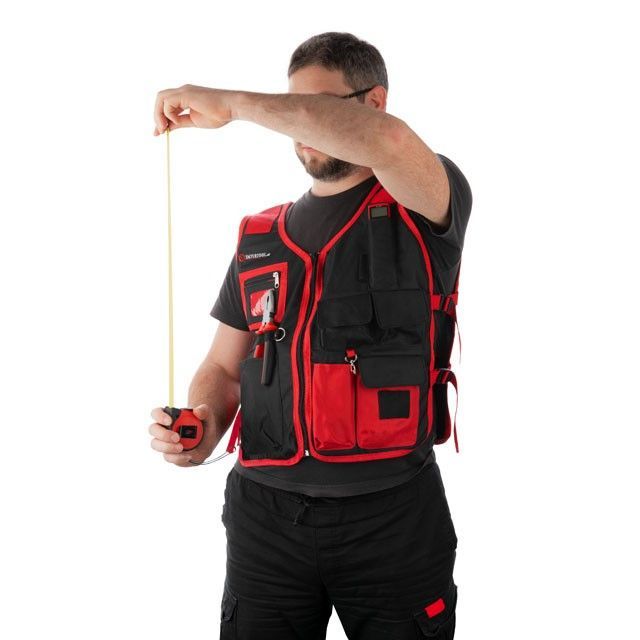 7 кишень дозволяють вмістити потрібні інструменти та деталі, більшість оснащені липучкою для зручного зберігання. Передбачена також нагрудна кишеня на блискавці для цінніших речей, документів. Також є невелика планка для олівців, викруток, ручок на еластичній стрічці як органайзер. Карабін можна використати для підвішування рулетки та інших потрібних інструментів.