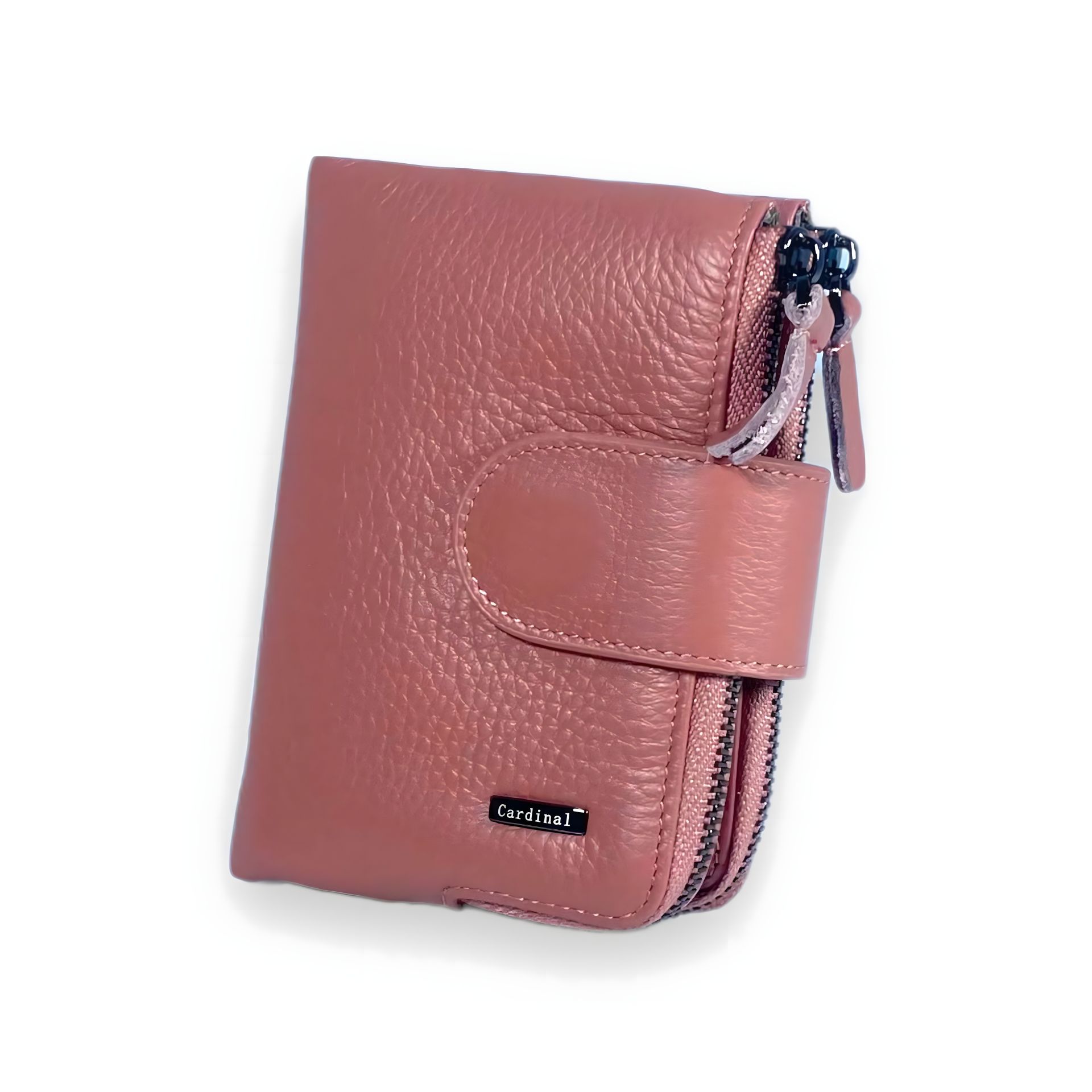 Оригінальний та зручний жіночий гаманець в компактних розмірах безперечно може стати в нагоді жінкам які полюбляють зручні аксесуари. Легко розміщується в жіночій сумочці або в кишені одягу. Передбачено два відділення для купюр 12 осередків для пластикових карт одне з них прозоре. Для монет або інших цінних дрібниць є два відділи на блискавці. Виготовлений з натуральної шкіри якісно та акуратно. Фіксується з домогою магнітної застібки.
