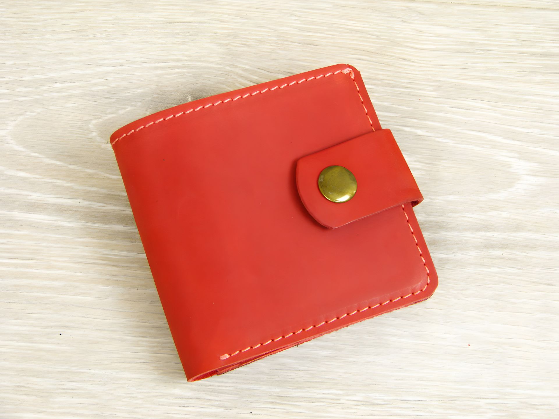 Жіноче портмоне пошите з вінтажної шкіри Crazy Horse коралового кольору.
