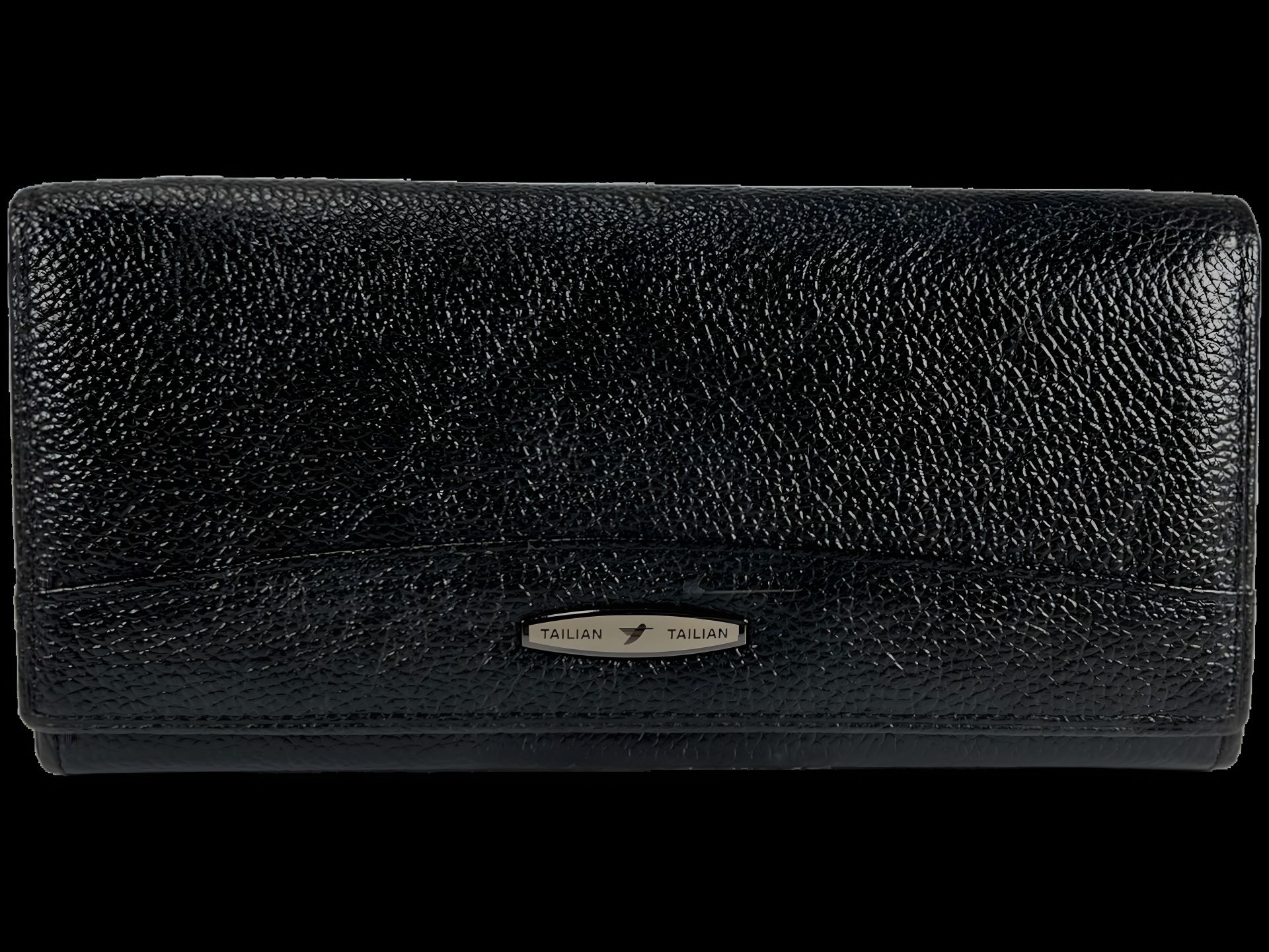 Чорний гаманець з натуральної шкіри Tailian з кнопковою застібкою