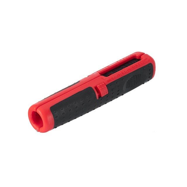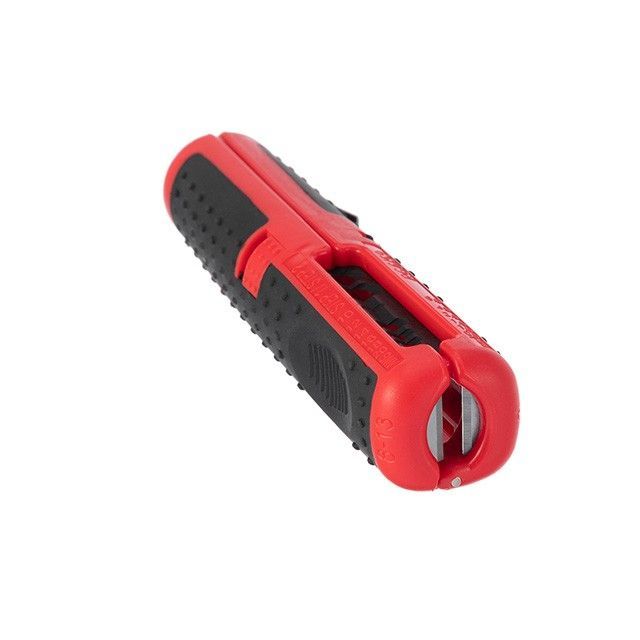 Зрізання оболонки відбувається максимально точно й швидко, без попереднього налаштування глибини різання, при цьому не ушкоджуються внутрішні жили кабелю. Компактні габарити знімача дозволяють акуратно знімати ізоляцію з проводів навіть у важкодоступних місцях і в обмежених умовах: на стелі та стінах, в освітлювальних і розподільчих коробках тощо.