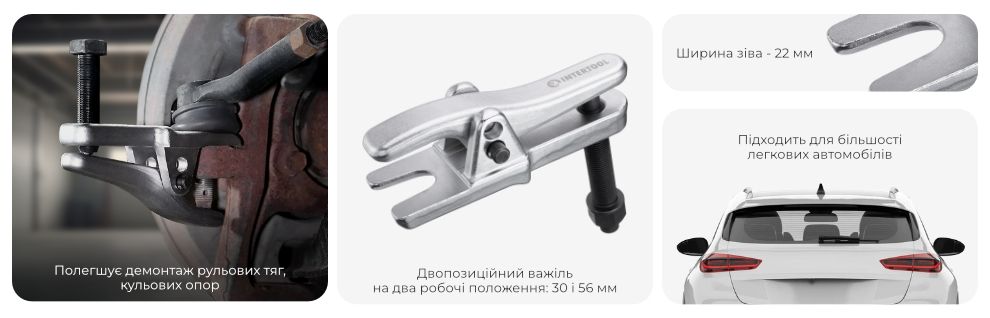 Знімач шарових опор і рульових тяг, ширина зіву: 22 мм, робочі положення: 30/56 мм INTERTOOL HT-7035
